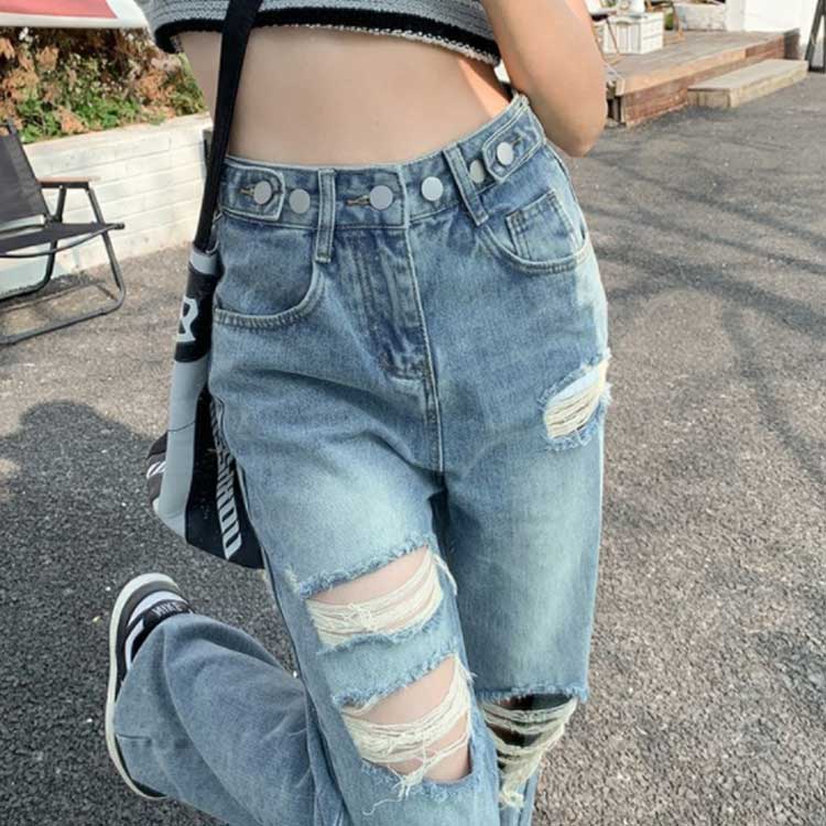 ダメージデニム ロングパンツ レディー レディースファッション 割引 S M L XL 2XL