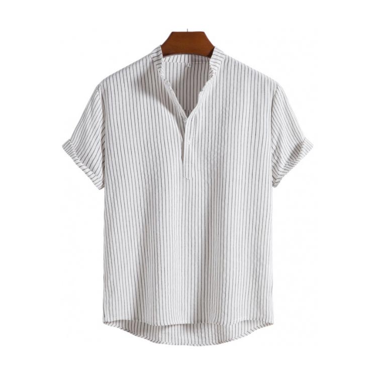 プルオーバー シャツ メンズ 半袖 シンプル おしゃれ スタンドカラー 大きいサイズ 半袖シャツ ストライプ 全7色 白 白シャツ パナマシャツ カジュアルシャツ トップス アメカジ カジュアル 夏服