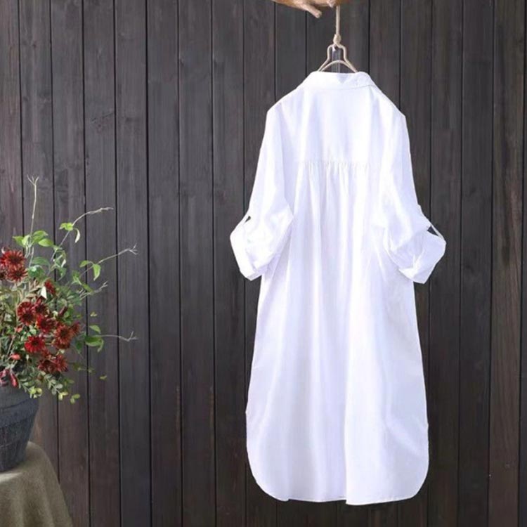 羽織り シャツワンピース ロング丈 レディース シャツ シャツワンピ チュニック丈 ロングシャツ コットン 長袖 前開き 無地 春服 秋服 オーバーサイズ ゆったり ロールアップ 大 体型カバー