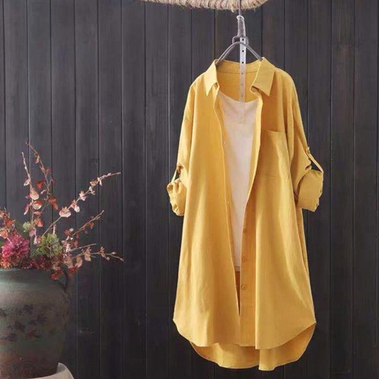 羽織り シャツワンピース ロング丈 レ トップス シャツ ブラウス 続々登場 ホワイト イエロー ライトブルー バラピンク グリーン ライトイエロー ライトピンク パープル S M L XL 2XL 3XL 4XL