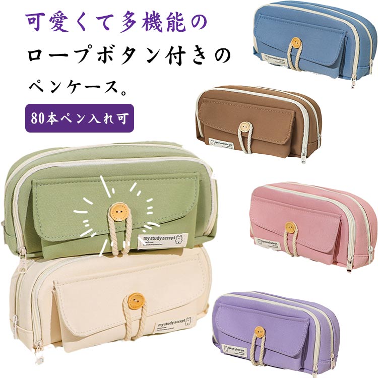 大容量 筆箱 ペンケース 80本ペン入れ可 ふで箱 可愛い おしゃれ 韓国風 コットンロープボタン 高校生 中学生 多機能 ペンホルダー シンプル ふでばこ 小学生 男の子 収納袋 文房具 化 女の子