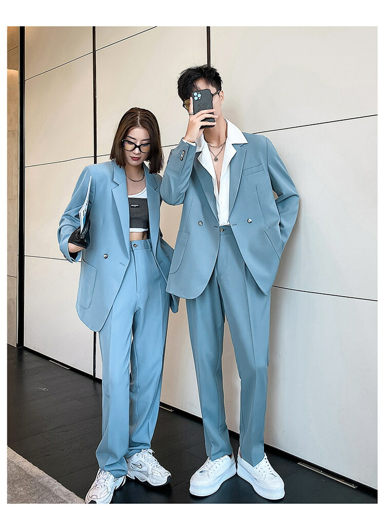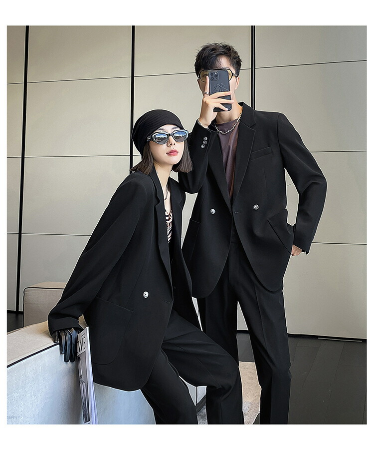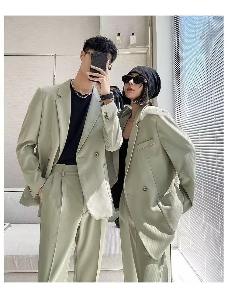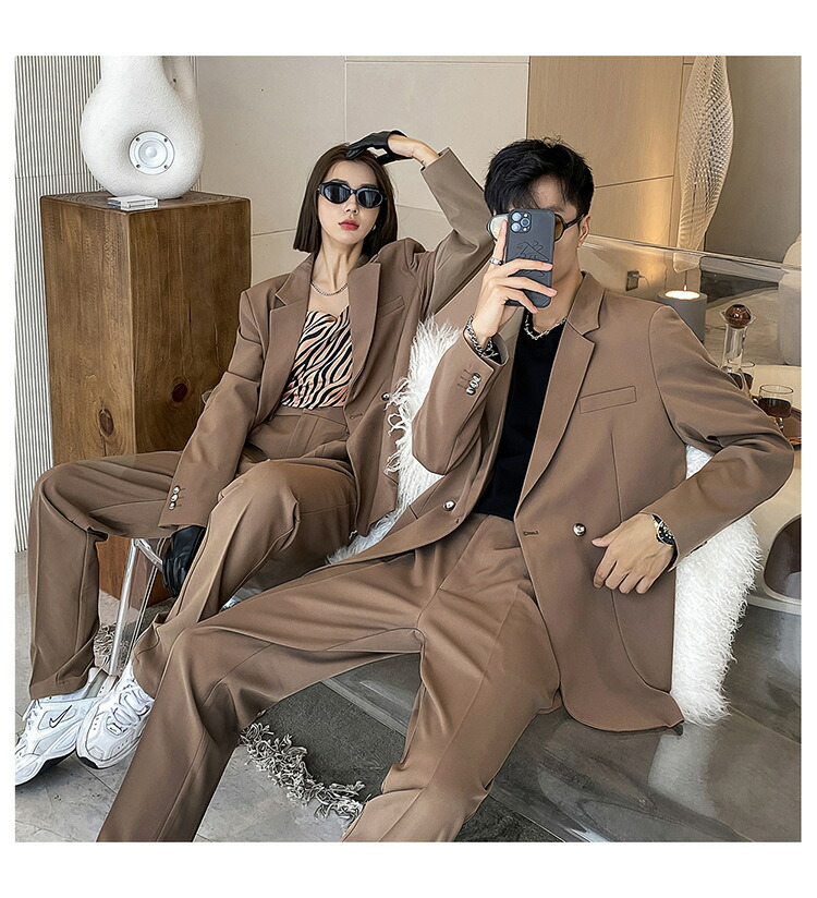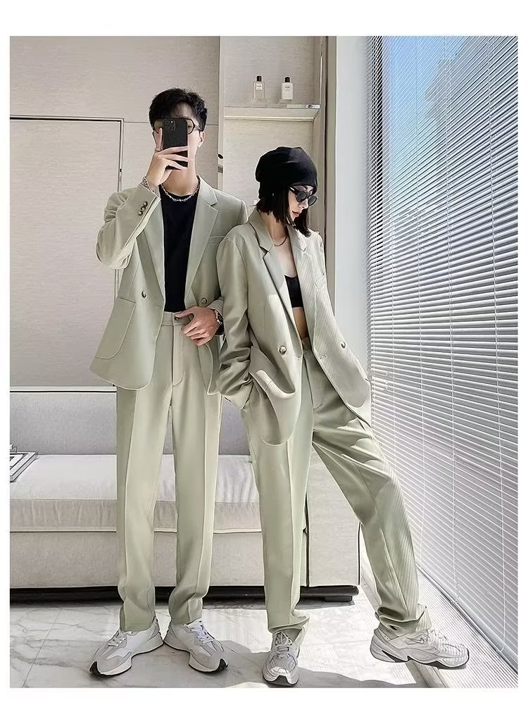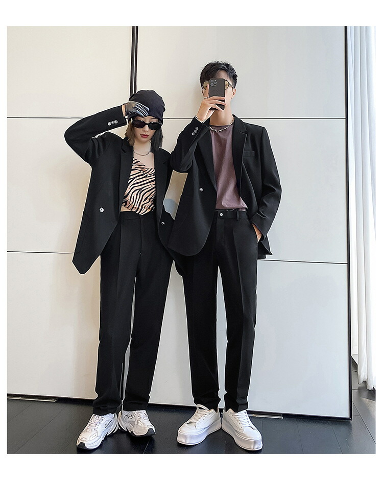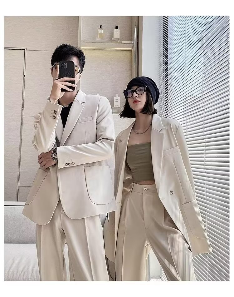 韓国風 お揃い ゆったり パンツスーツ カップル メンズスーツ レディーススーツ 一つボダン ジャケット+パンツ 2点セット おしゃれ 格好いい 無地 着痩せ セレモニースーツ フォー ビジネススーツ