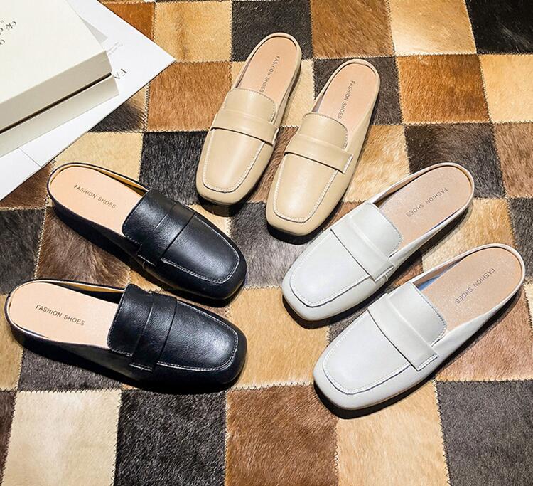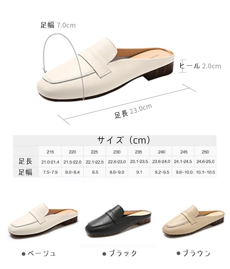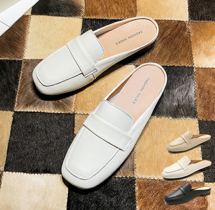 本革 ミュール スクエアトゥ フラット 靴 割引 ベージュ ブラック 22.5cm 23cm 23.5cm 24cm 24.5cm 25cm