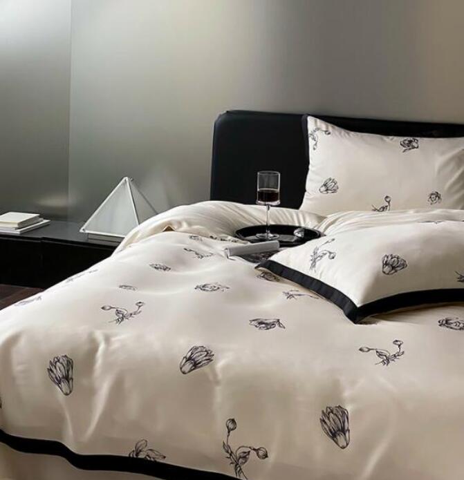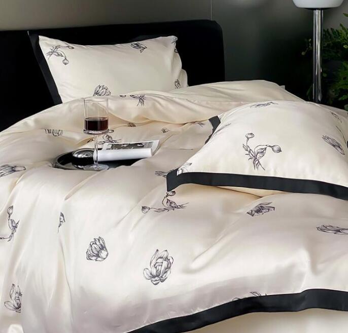 布団カバーセット 4点セット 和風 涼感 ツルツル ダブル クイーン 花柄 柔らかい 肌に優しい 可愛い ボックスシーツ フラットシーツ 掛け布団カバー 枕カバー 通気性 速乾 防ダニ 寝心地が良い