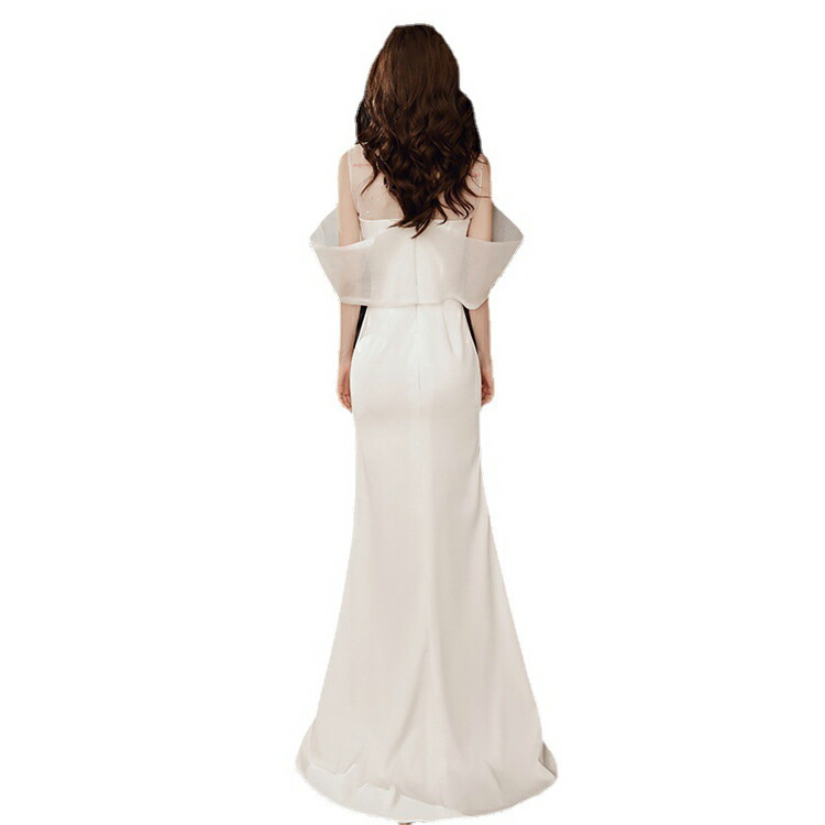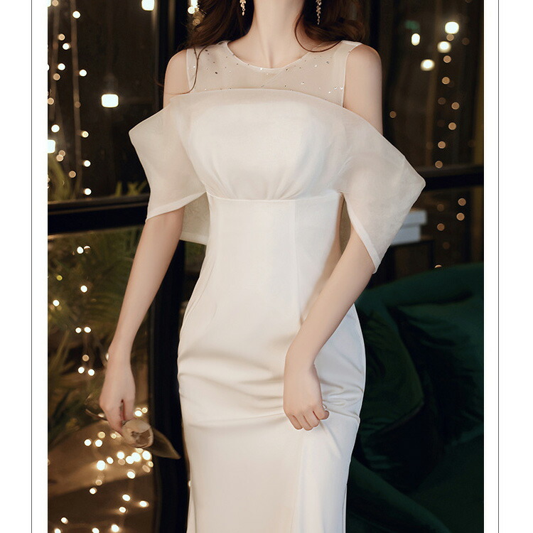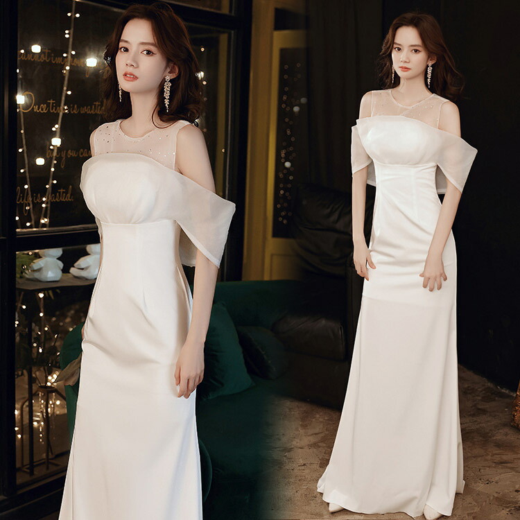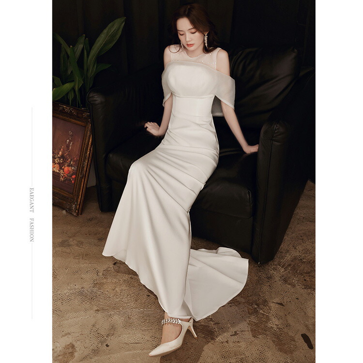 マーメイドドレス イブニングドレス サテン ドレス 白 黒 ワイン赤 発表会ドレス オフショルダー ロングドレス 結婚式ドレス 二次会ドレス ワインレッド オシャレ パーティードレス マーメイ 肩出し