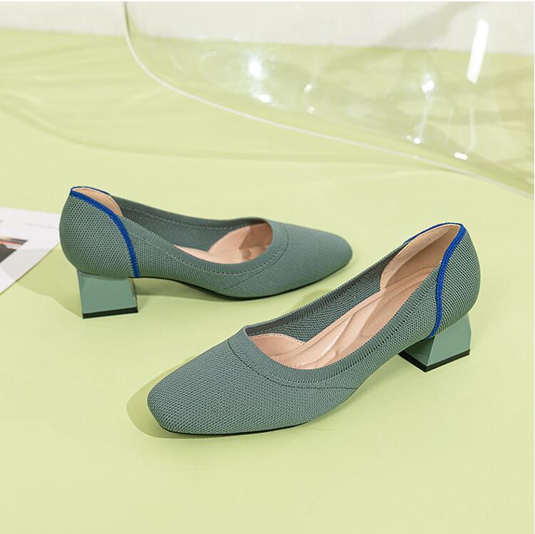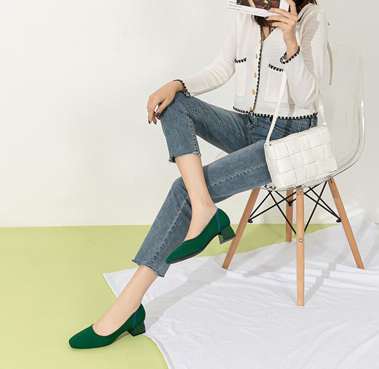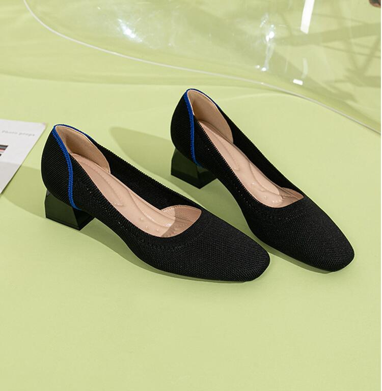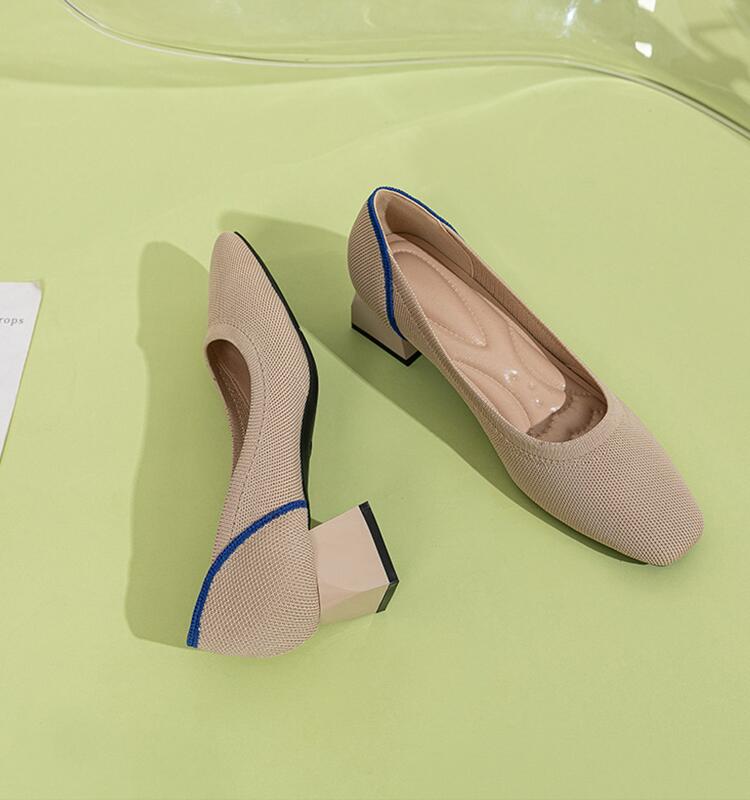 ・ニット パンプス ローヒール 痛くない ヒール4センチ 歩きやすい バイカラー スクエアトゥ パンプス レディース シューズ チャンキーヒール ぺたんこ 黒 ブラック ベージュ 春夏 低反発 大きいサイズ 脱げる 20 30 40 50代 送料無料