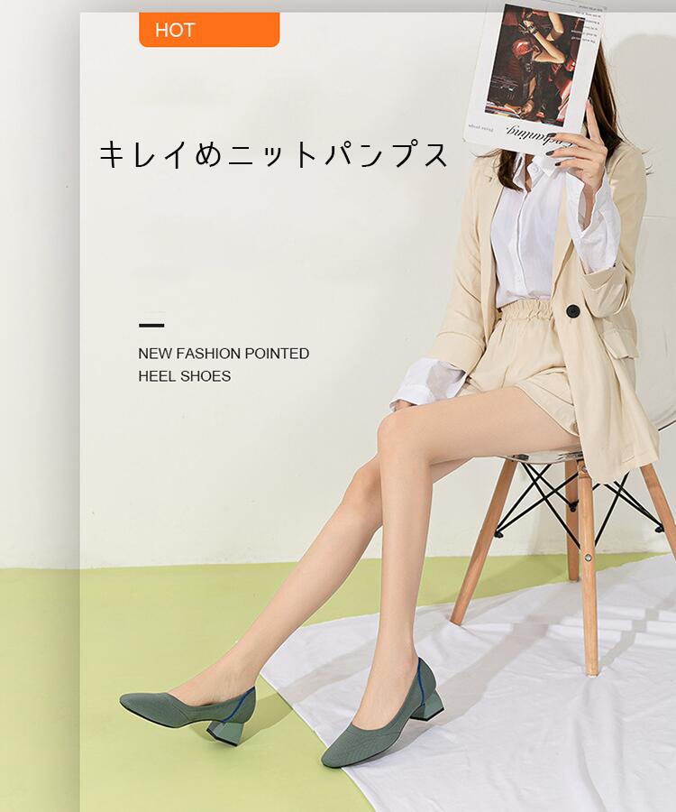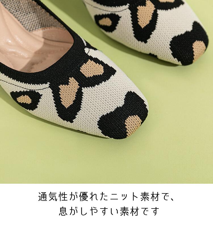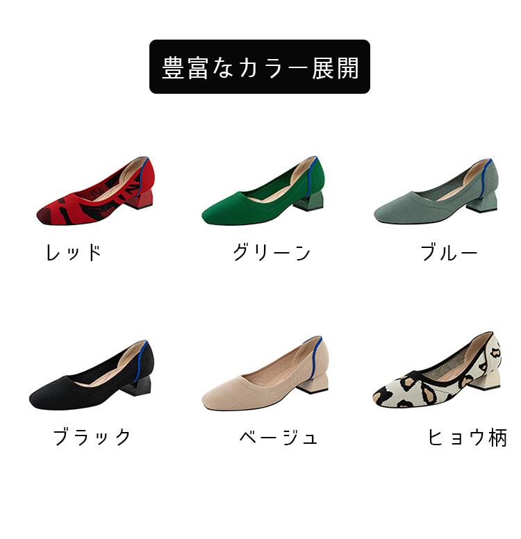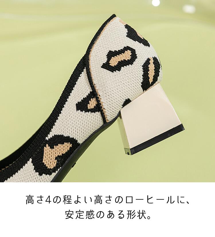 ニット パンプス ローヒール 痛くない 靴 割引 ブラック ベージュ ブルー ヒョウ柄 レッド グリーン 22cm 22.5cm 23cm 23.5cm 24cm 24.5cm 25cm