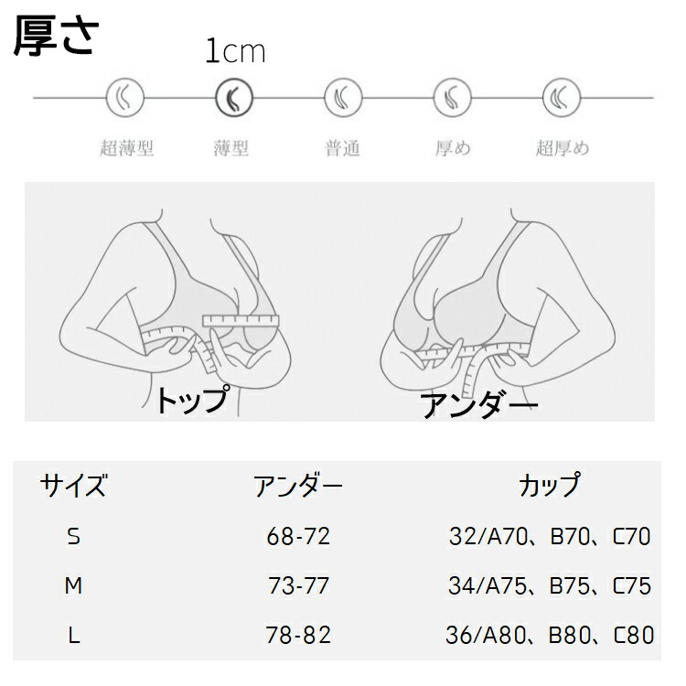 Lサイズ( アンダー 78 - 82cm 、カップA80、B80、C80)