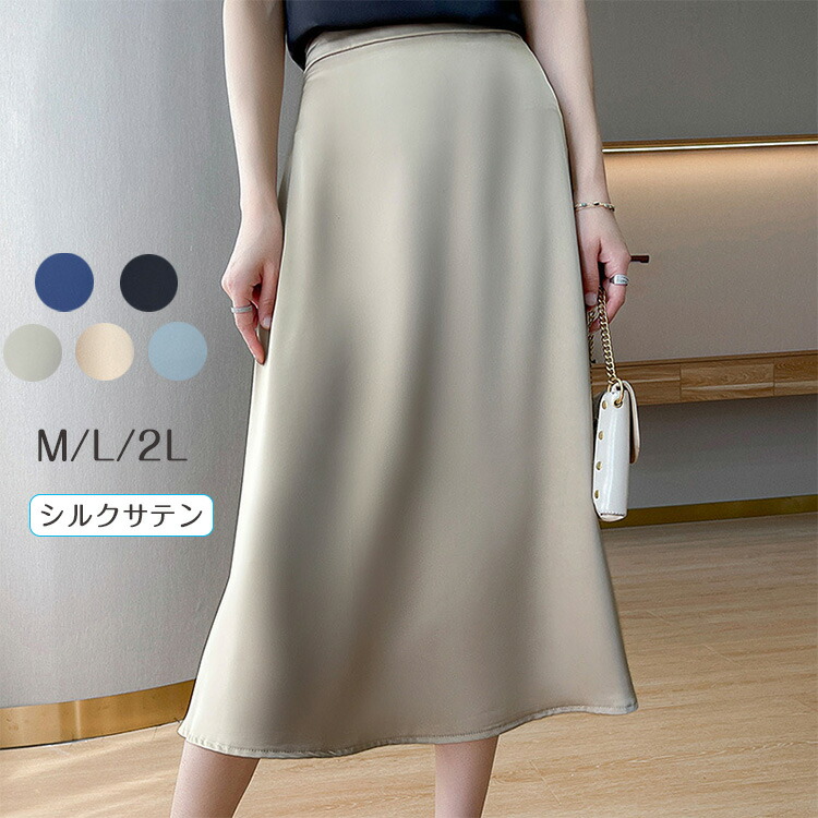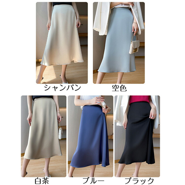 シルク サテン ロングスカート サテン レディースファッション 人気 シャンペン 空色 白茶 ブルー ブラック M L LL