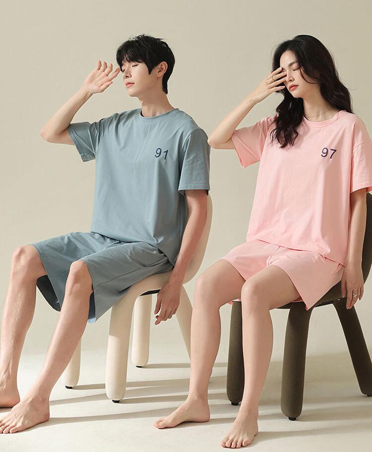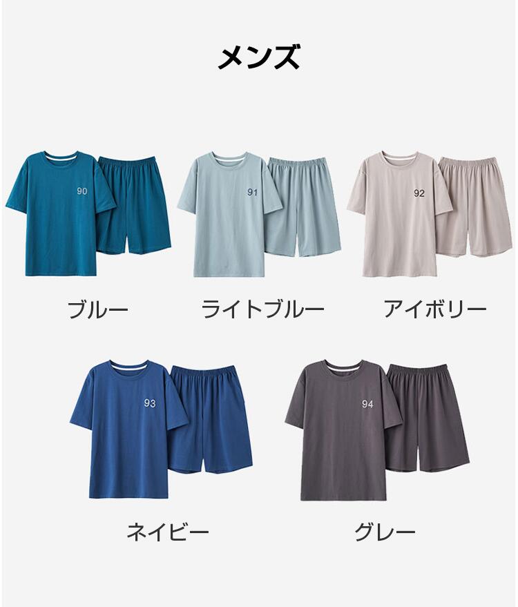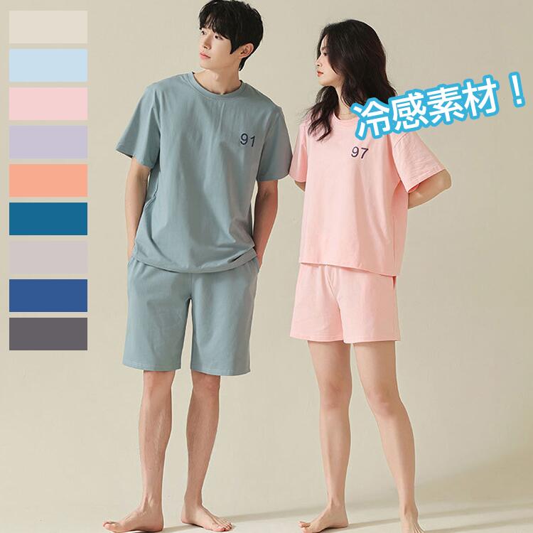 冷感 ペアパジャマ おしゃれ 夏 半袖 レディース ナイトウェア ルームウェア ルームウェア 上下セット 人気 レディース※ベージュ レディース※ライトブルー レディース※ピンク レディース※オレンジ メンズ※ブルー メンズ※ライトブルー メンズ※アイボリー メンズ※ネイビー メンズ※グレー M L 2L(XL) 3L(2XL) 4L(3XL)