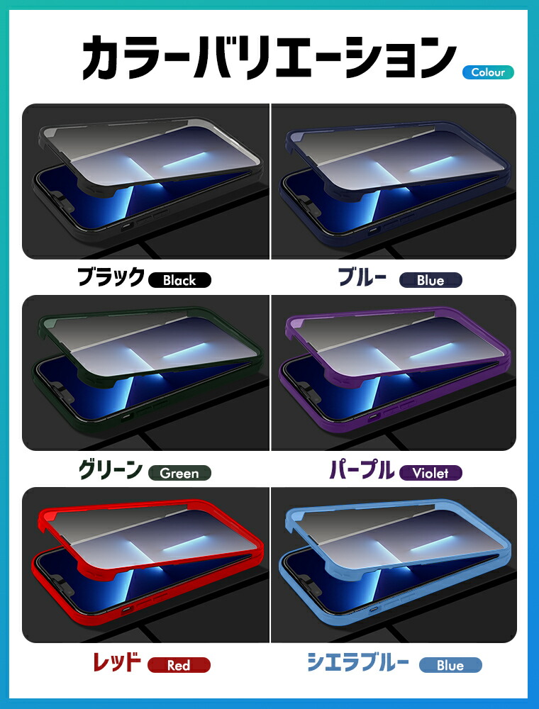 360°全面保護ケース 両面ガラス カ スマートフォン タブレット 通販 iPhone 16(6.1) iPhone 16 Plus(6.7) iPhone 16 Pro(6.3) iPhone 16 Pro Max(6.7) iPhone 15(6.1) iPhone 15 Plus(6.7) iPhone 15 Pro(6.1) iPhone 15 Pro Max(6.7) iPhone 14(6.1) iPhone 14 Plus(6.7) iPhone 14 Pro(6.1) iPhone 14 Pro Max(6.7) iPhone 13 mini(5.4) iPhone 13(6.1) iPhone 13 Pro(6.1) iPhone 13 Pro Max(6.7) iPhone 12 mini(5.4) iPhone 12(6.1) iPhone 12 Pro(6.1) iPhone 12 Pro Max(6.7) iPhone 11(6.1) iPhone 11 Pro(5.8) iPhone 11 Pro Max(6.5) iPhone X/XS iPhone XS Max iPhone XR iPhone7/8/SE2/SE3 ブラック ブルー グリーン パープル レッド シエラブルー グレー
