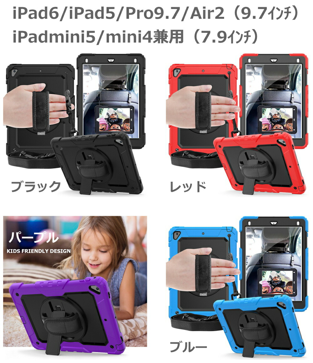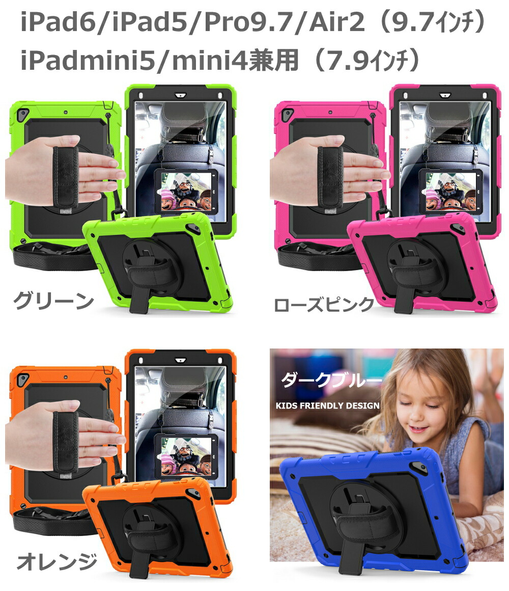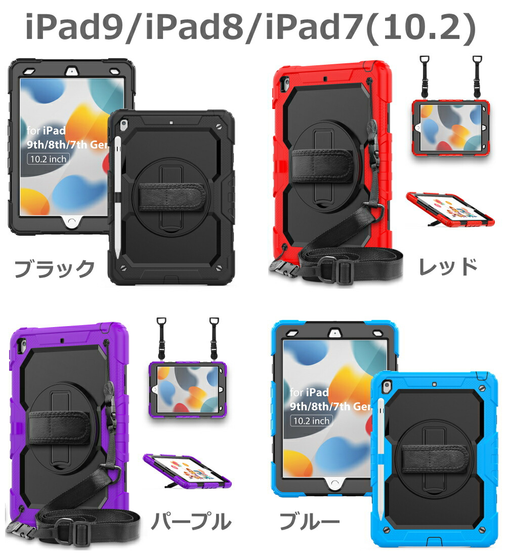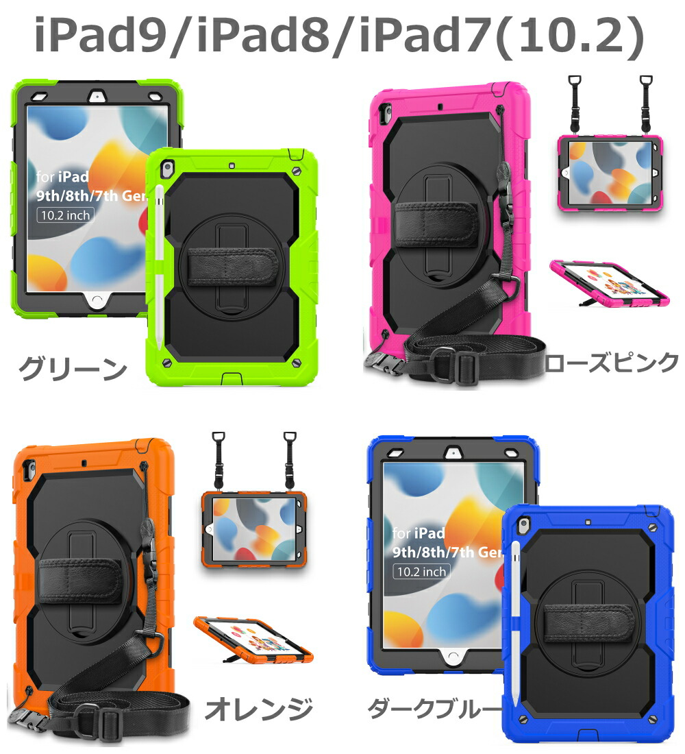ipad ケース 耐衝撃 ハイブリット iPad10(10.9-2022) iPad9/iPad8/iPad7(10.2) iPad6/iPad5/Pro9.7/Air2 Air5/Air4/Pro11(第4/3/2/1世代) iPadmini6(2021年8.3インチ) iPadmini5/mini4兼用 ブラック ダークブルー オレンジ レッド グリーン パープル ブルー ローズピンク