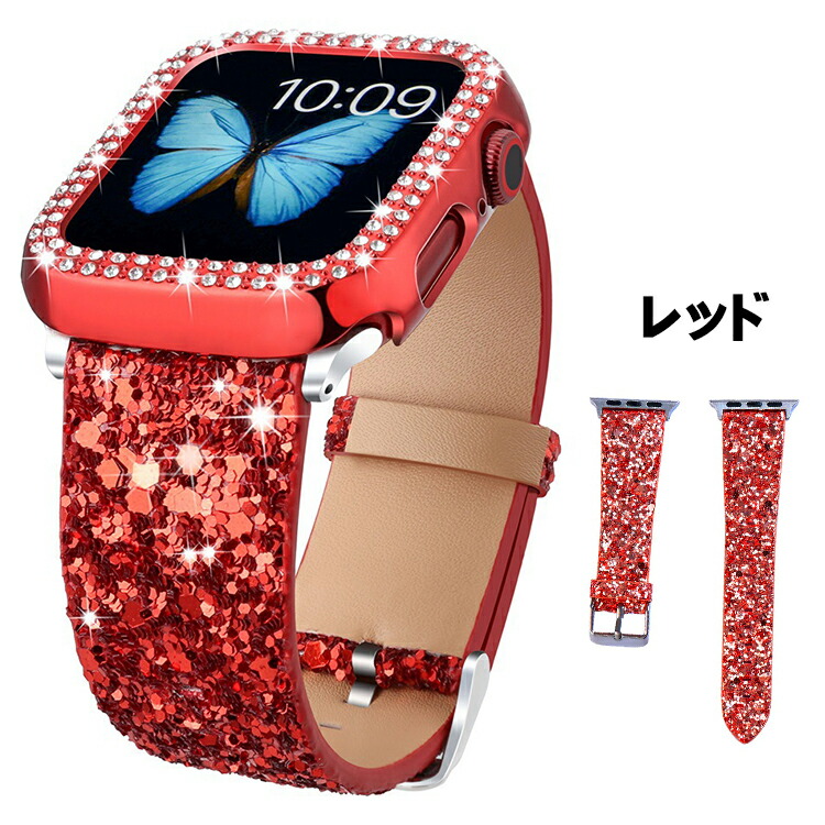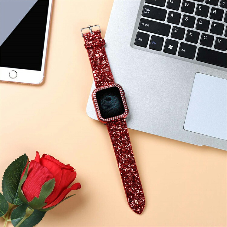 Apple watch バンド キラキ 腕時計 続々入荷中 シルバー レッド ローズゴールド ブラック 38mm 40mm 42mm 44mm 41mm 45mm