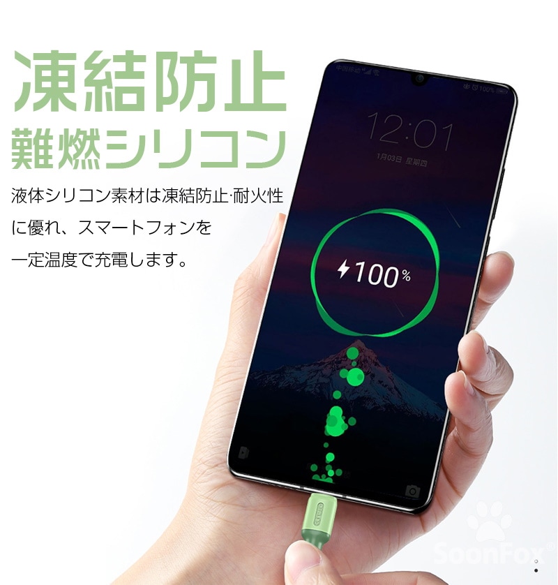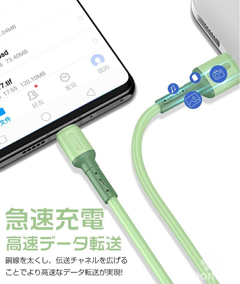 上質なシリコン素材を使用しており、従来のケーブルより柔らかく、扱いやすいです。手触りもGood。 ケーブルが柔らかいので絡まらず、快適に使用できます。ケーブルにかかる負担を軽減し、使用寿命をより長くします。