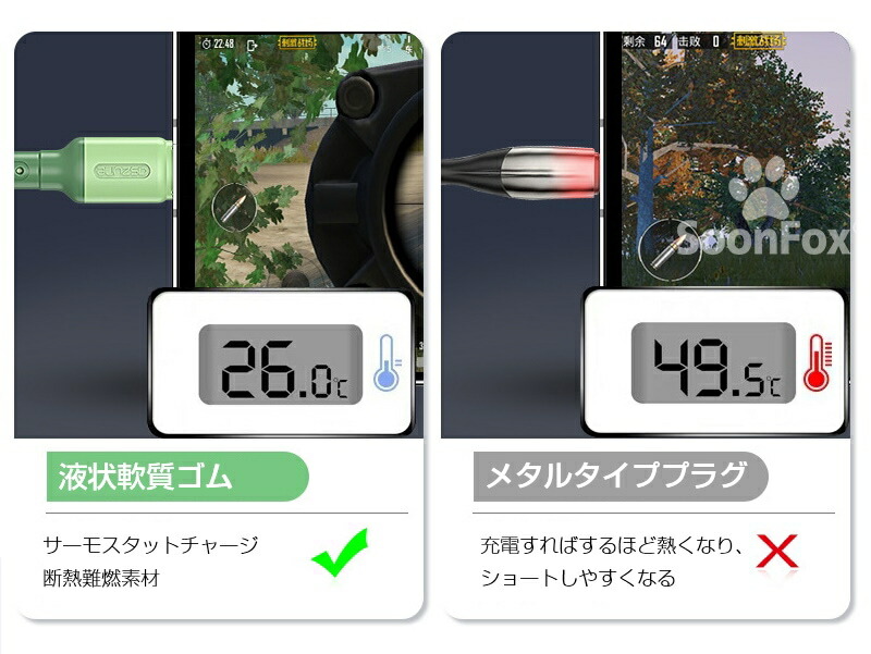 このtypec ケーブルは各種の上質素材を使用した安全重視設計により3Aの高出力を流せしかも過充電と発熱などを防ぎ、安定性の高い急速充電と大切な機器の損傷防止を実現します。