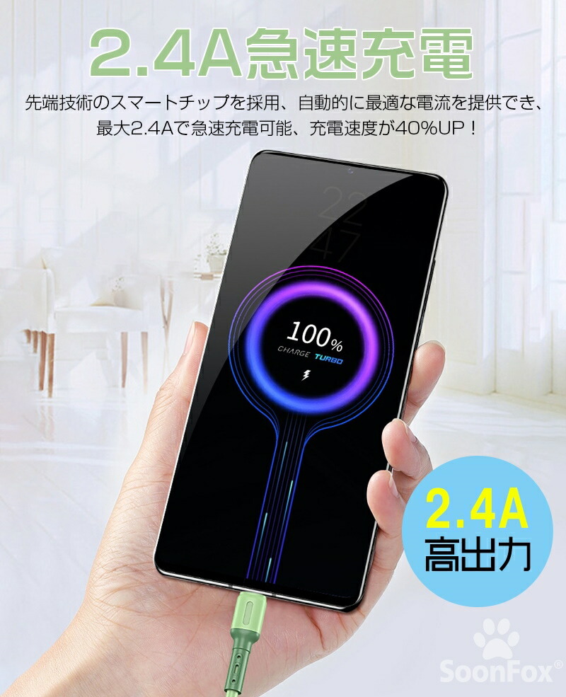 充電ケーブル iPhone用 Android用 micro USB Type-C USBケーブル 急速充電ケーブル 2.4A モバイルバッテリー データ転送 柔軟スマホ 高耐久TPE素材