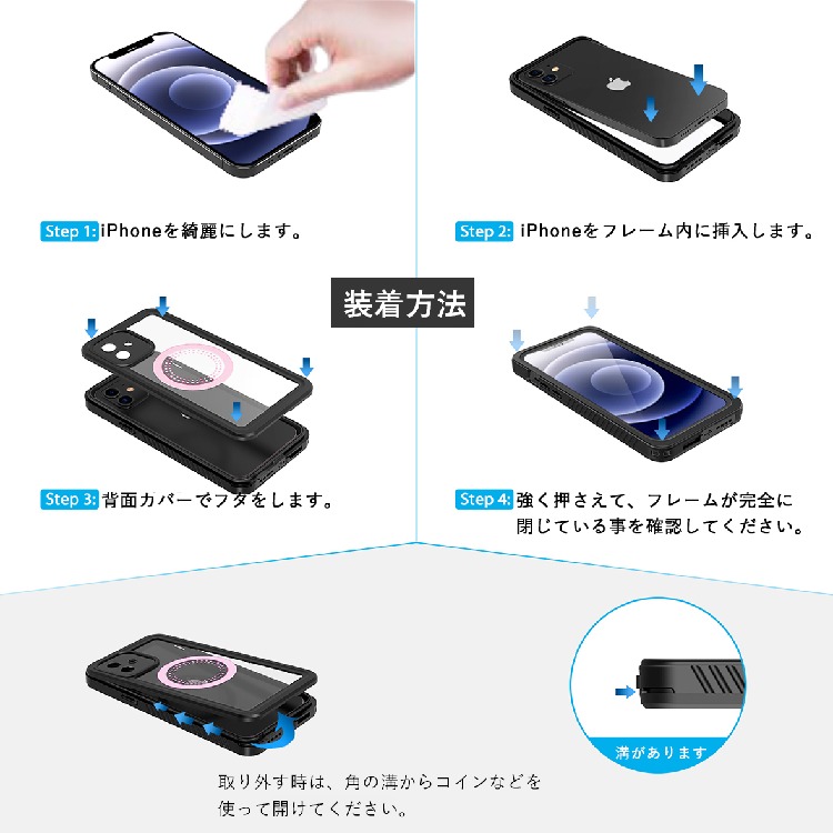 使用前は必ず防水テストを行ってください。