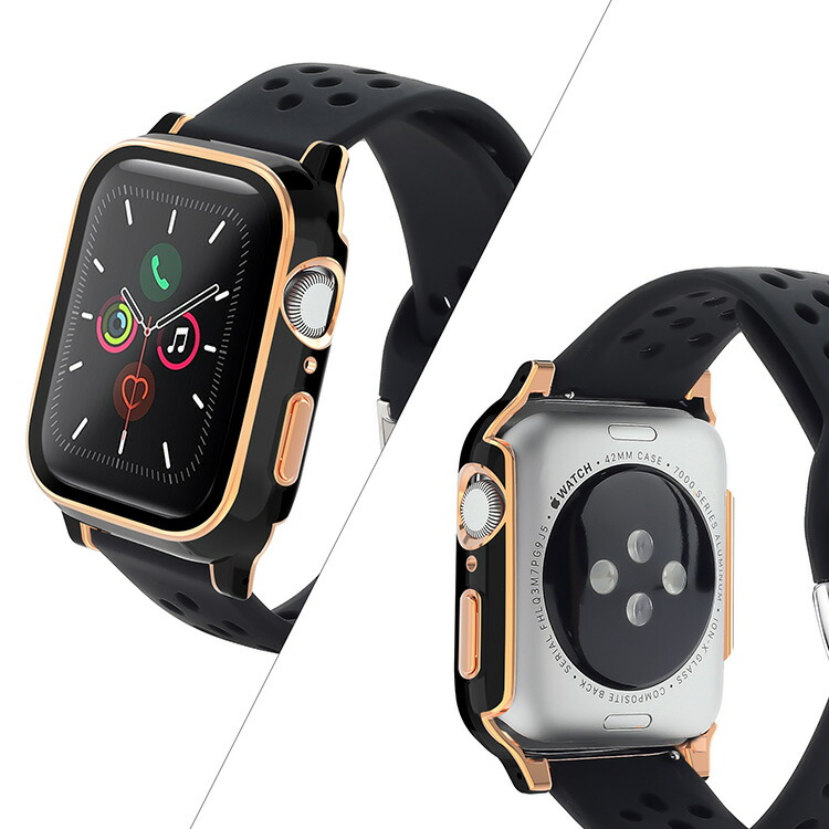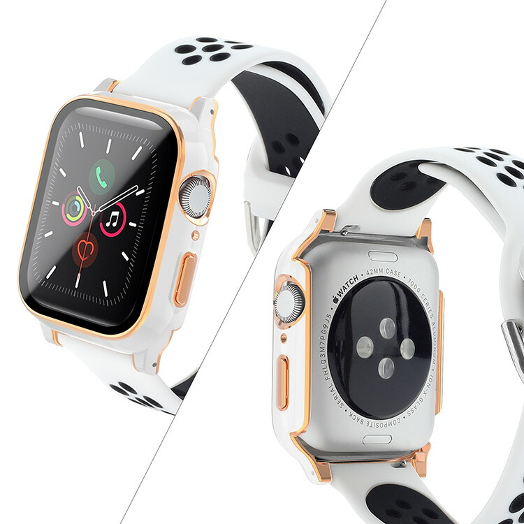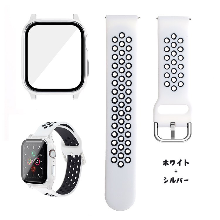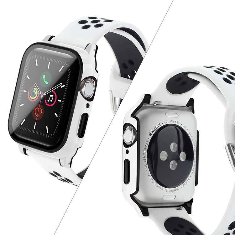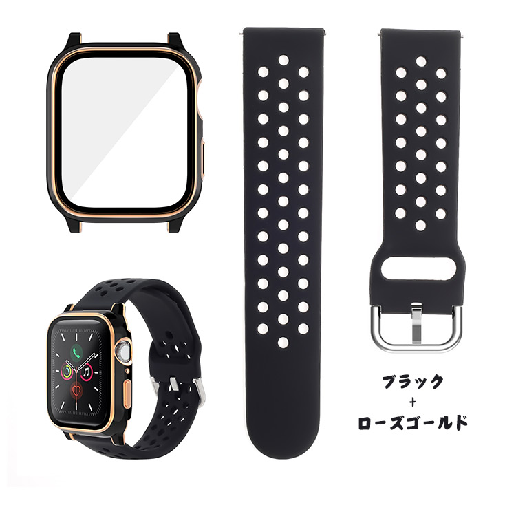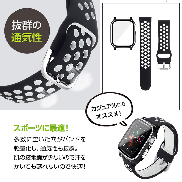 Apple watch バンド 9H強度ガラスケース付き 一体型 全面保護 スポーツベルト series6 5 4 3 2 1 se 通気性よい 44mm 40mm 38mm アップルウォッチ