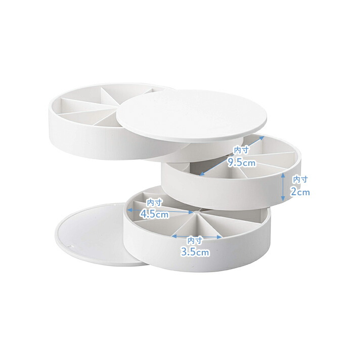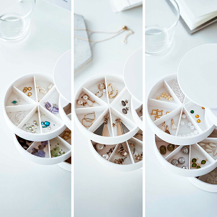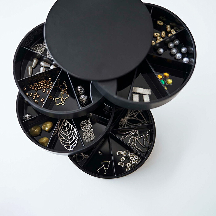 ネイルパーツや、ハンドメイドのパーツ、小さなアクセサリーなどを綺麗に整頓して収納できる回転式のケースです。