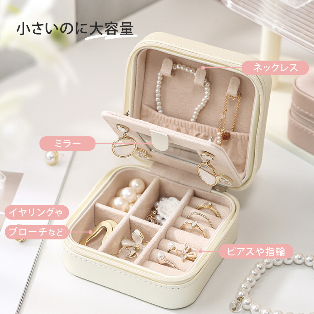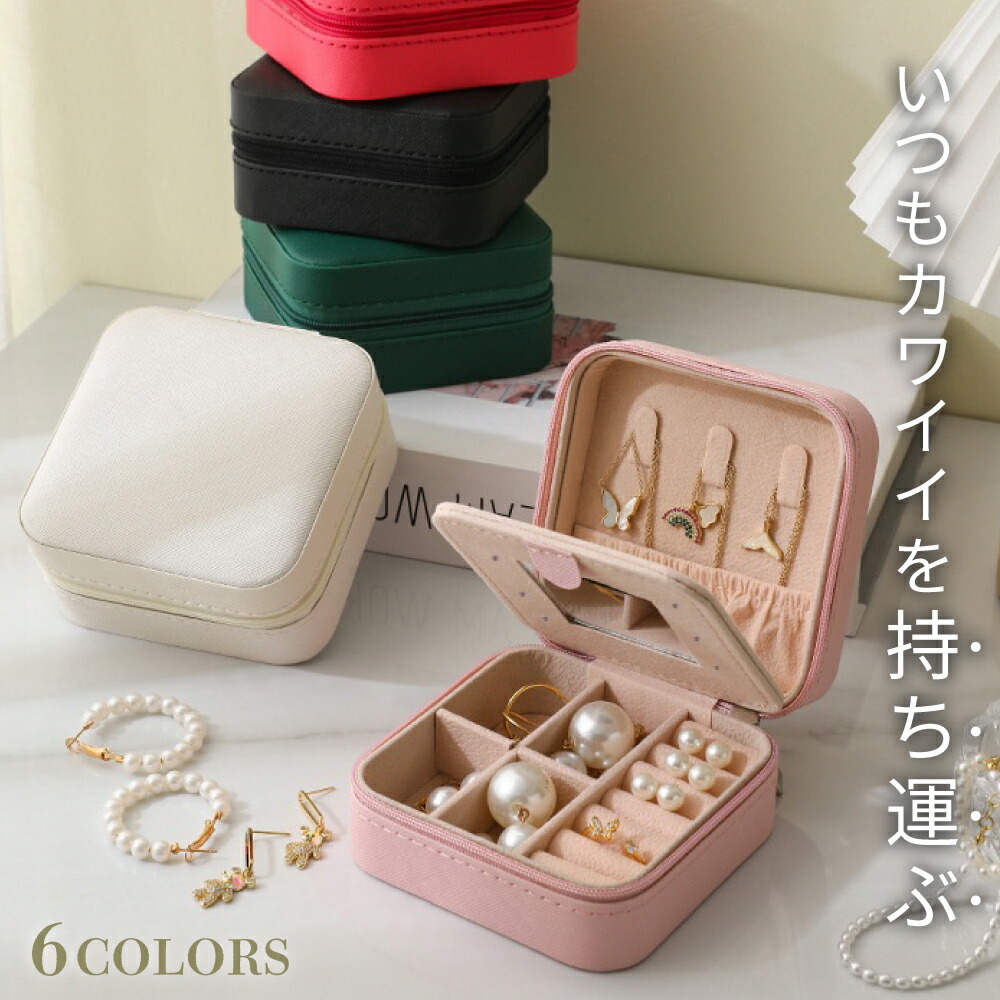 アクセサリーケース 持ち運び 小さい ジュエリー アクセサリー 新作 ホワイト オフホワイト ローズレッド ピンク ブラック グリーン