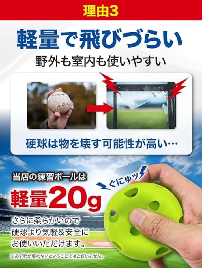 【弾力性が高いから壊れにくい】弾力性の高いEVA素材を採用したことで、軽くて丈夫な壊れにくいボールができました。場所を選ばず使える練習ボールは12個セットから36個セットまであり、用途に合わせて選ぶことが出来ます。