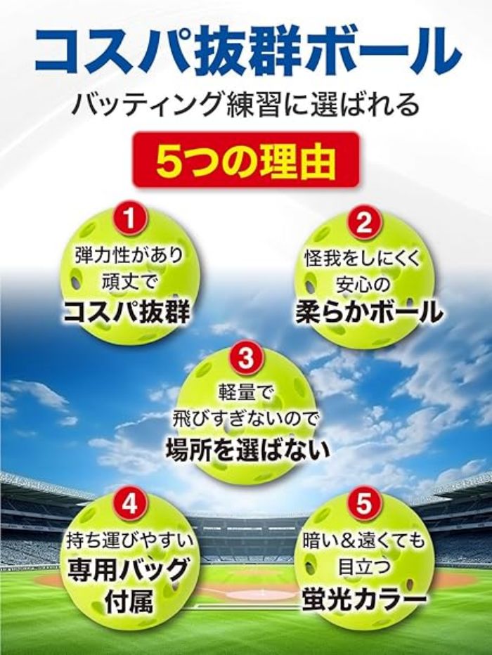 野球 練習用 ボール 穴あきボール バッティング トレーニング 野球ボール 練習 子供 柔らか EVA素材 直径72mm 収納袋付き 12個 24個 セット イエロー グリーン 36個