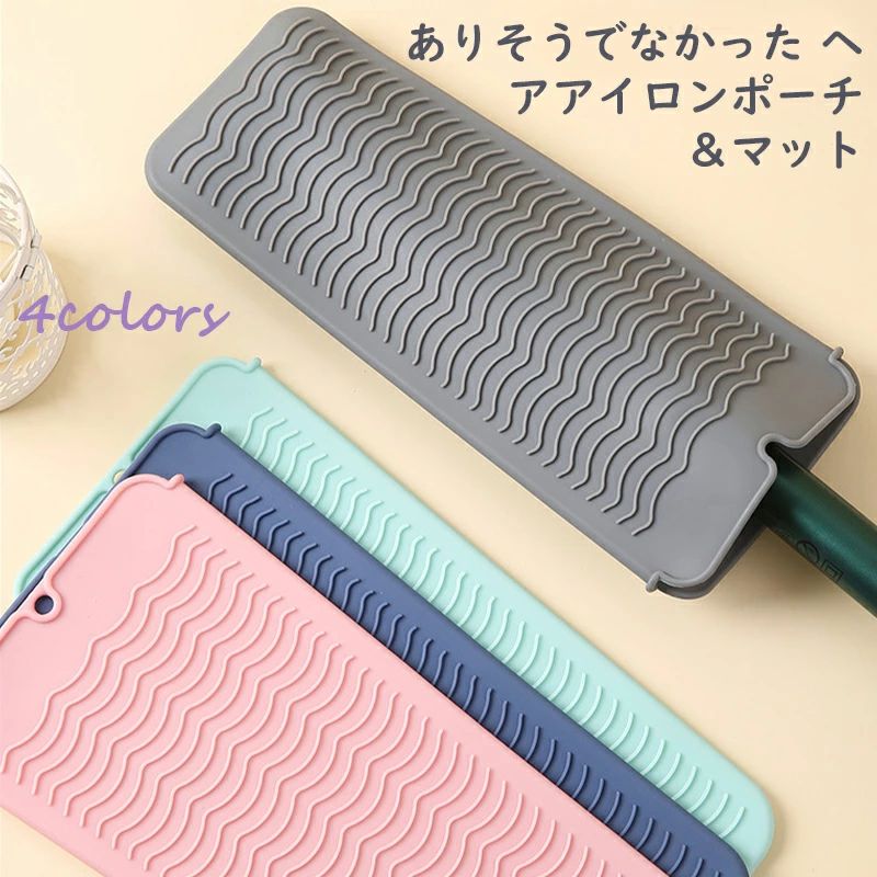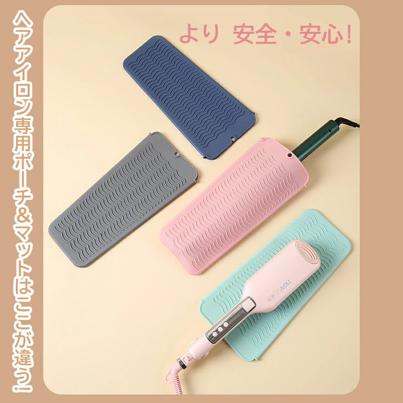 パステル4色 シリコン製 ヘアアイロンポーチ & マット 耐熱 温度300℃ ヘアアイロンケース カバー ヘアーアイロン ヘア-アイロン シリコンケース シート