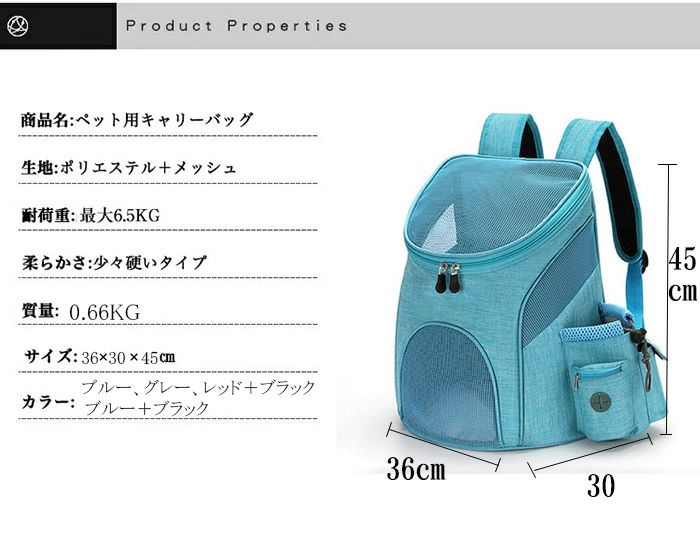 幅:36cm 高さ:45cm 奥:30cmおすすめ体重:~6.5kg未満