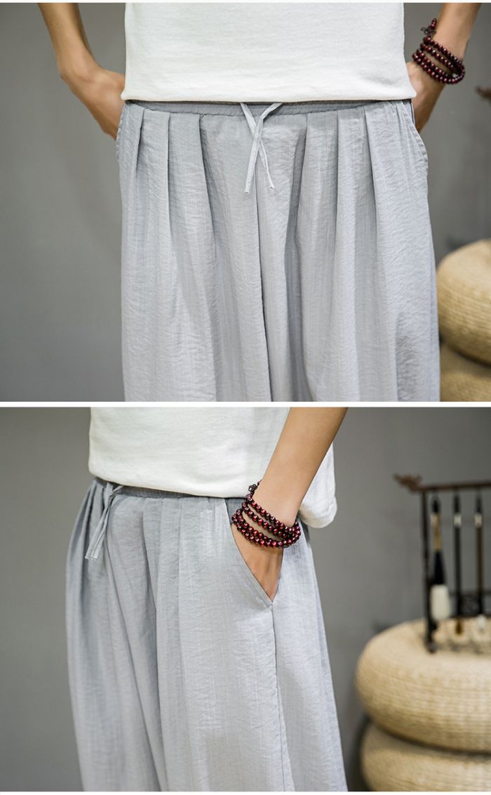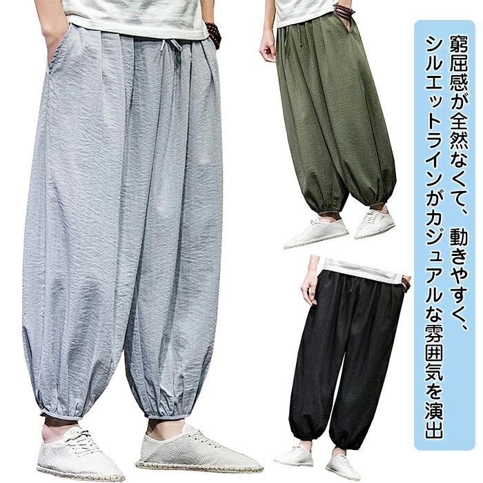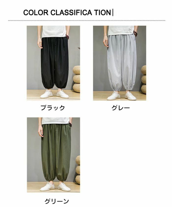 メンズ ズボン 夏用 ガウチョパンツ メンズファッション 39%Off ブラック グレー グリーン M L XL 2XL 3XL