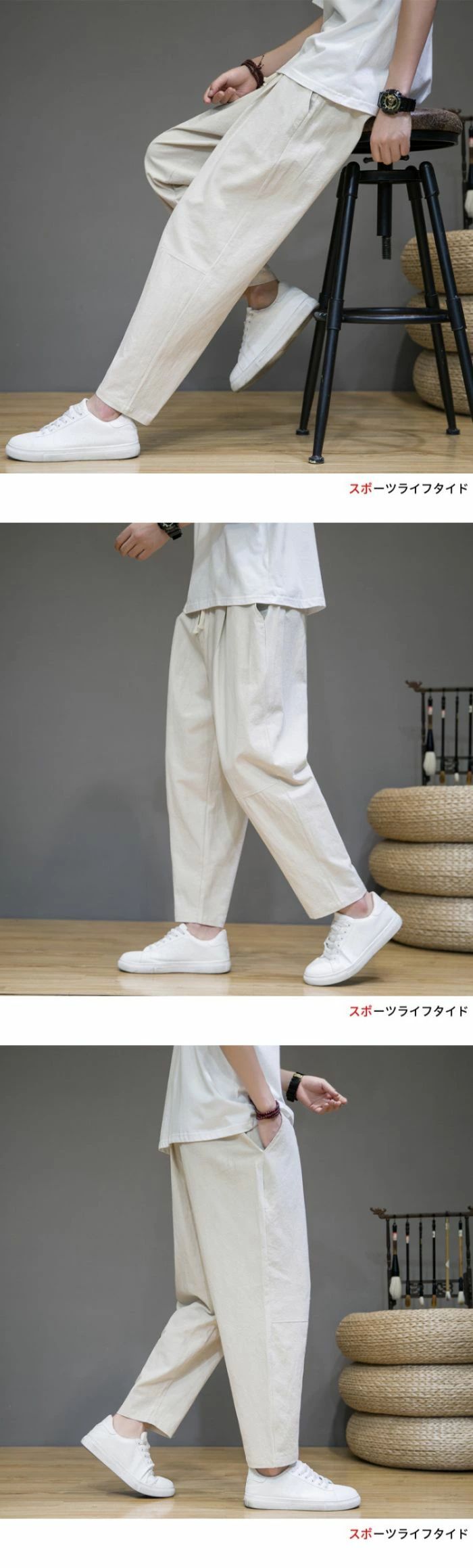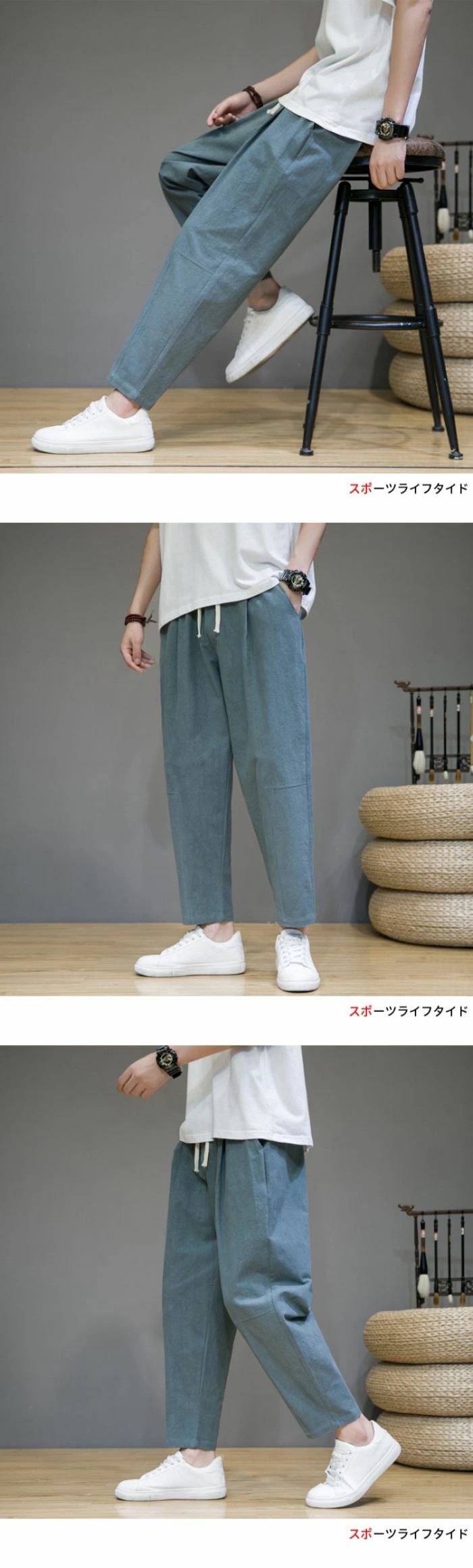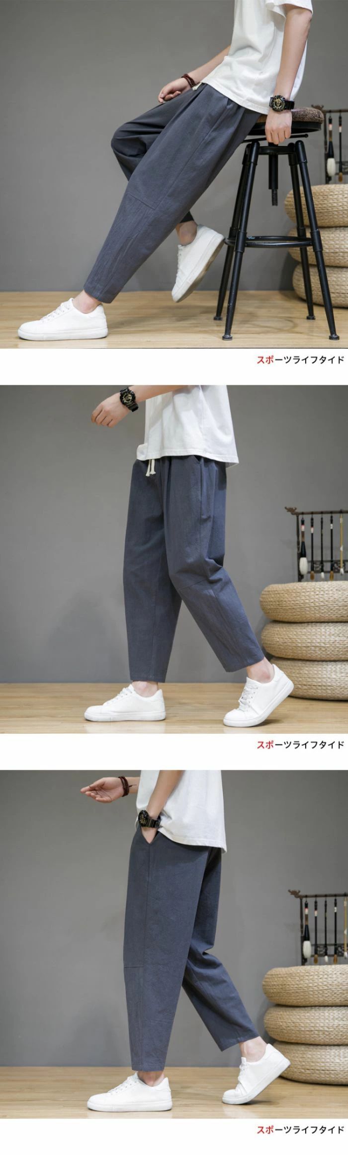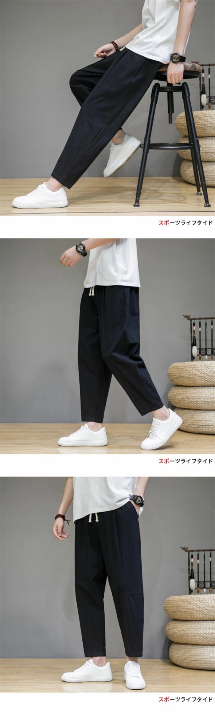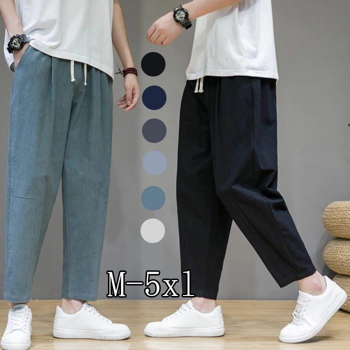 ズボン メンズ サルエルパンツ 9分丈 ゆったり 夏 無地 綿麻 ワイドパンツ 大きいサイズ 人気 カジュアル おしゃれ パンツ 秋 冬 ロングパンツ 春