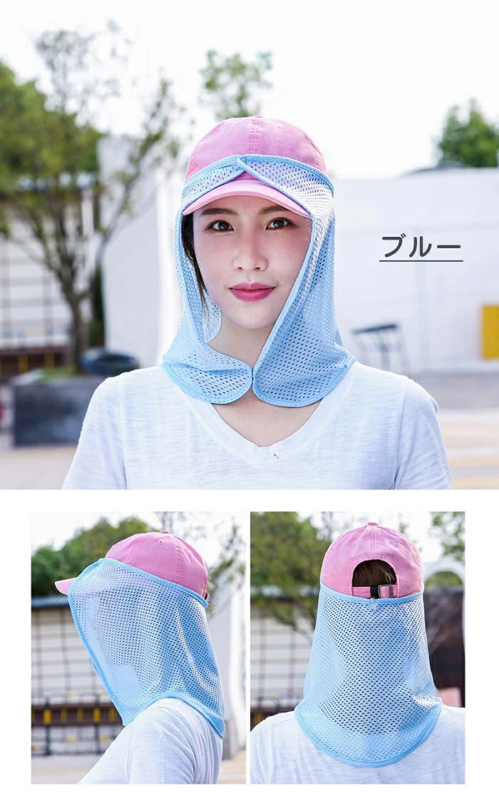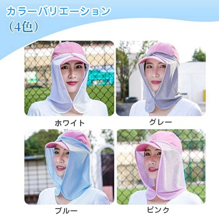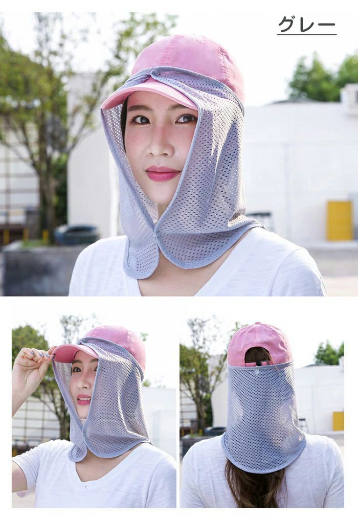 帽子用フェイスカバー UVカット ネッ グレー ピンク ブルー ホワイト