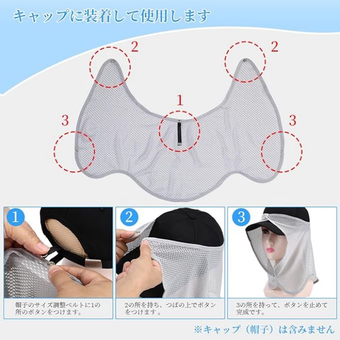帽子用フェイスカバー UVカット ネックガード 紫外線対策 メッシュ 涼しい ネックカバー キャップのフラップ通気 吸汗速乾 男女兼用 首筋を熱から守る