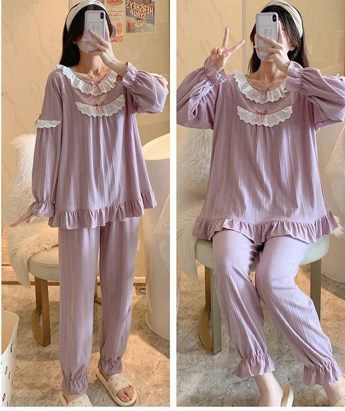 パジャマ レディース ルームウェア 綿 レディース ナイトウェア ルームウェア ルームウェア 上下セット 特集 ブルー ピンク イエロー ホワイト パープル M L XL 2XL