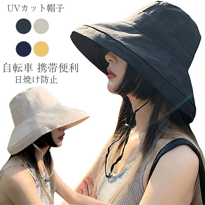 UVカット帽子 レディース ハット【U 帽子 レディース帽子 ハット 割引 ブラック ネイビー イエロー ベージュ