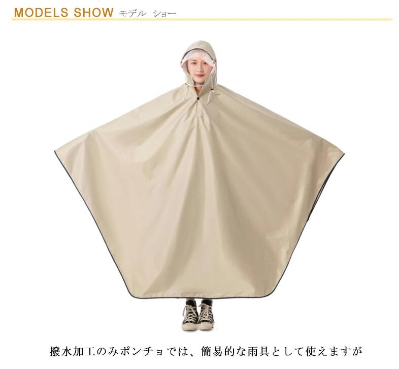 撥水加工のみポンチョでは、簡易的な雨具として使えますが