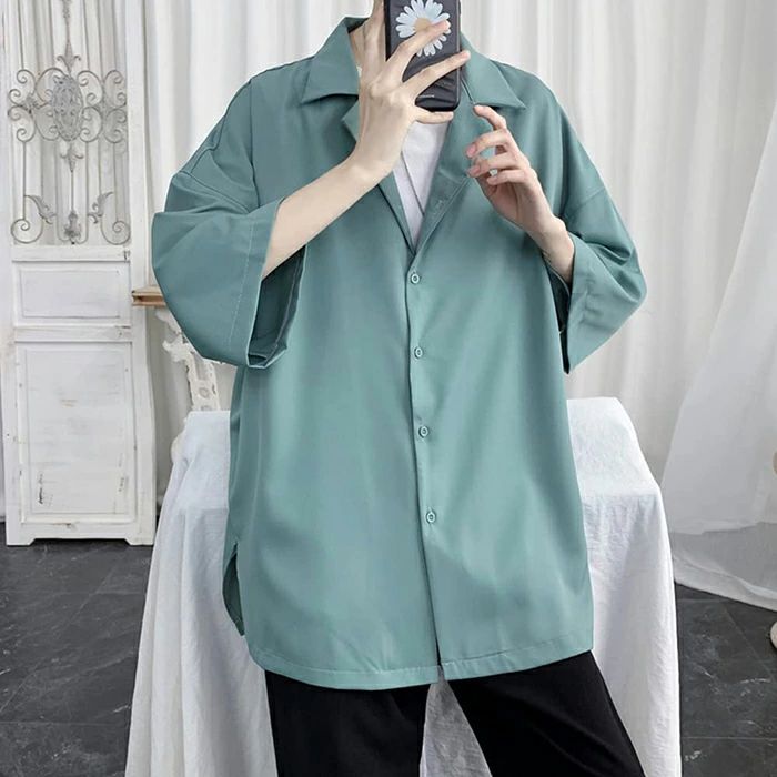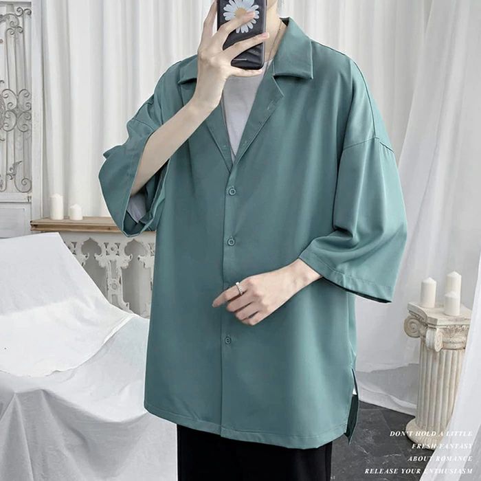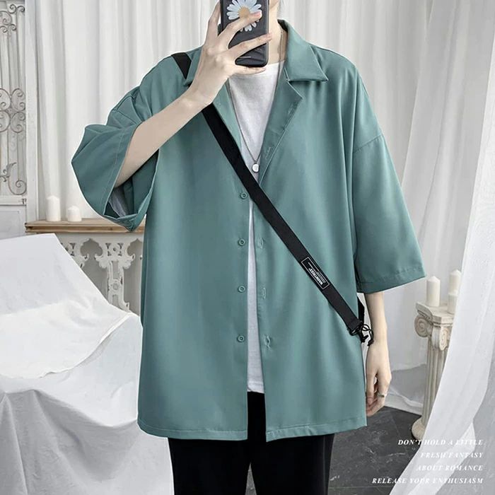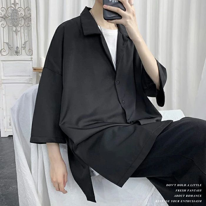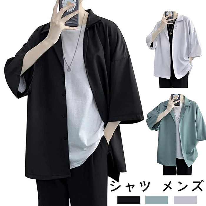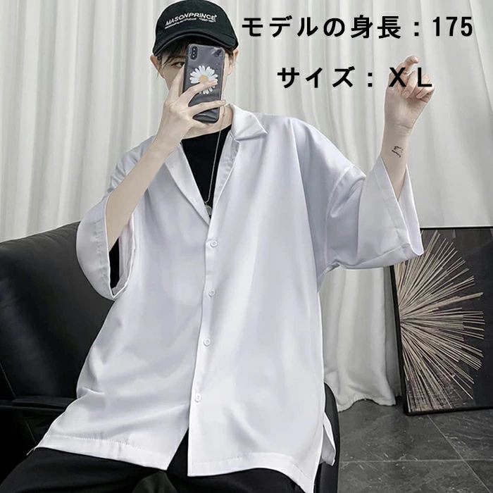メンズ 五分袖 吸汗速乾 快適な軽い オーバーサイズシャツ ワイシャツ 韓国 ポロネック 大きいサイズ 春 夏 派手 ドロップショルダー 無地 半袖 ストリート系