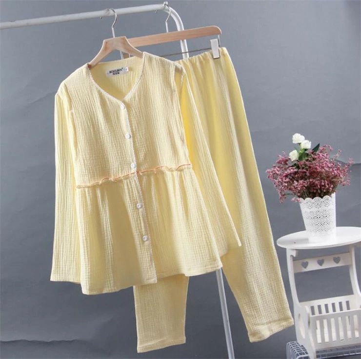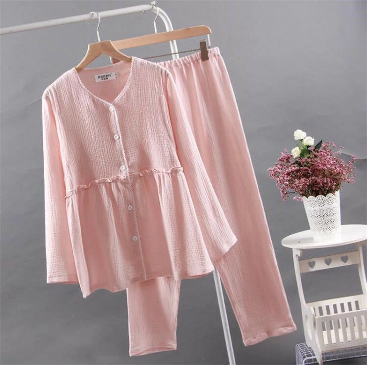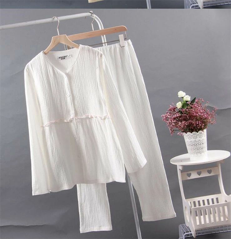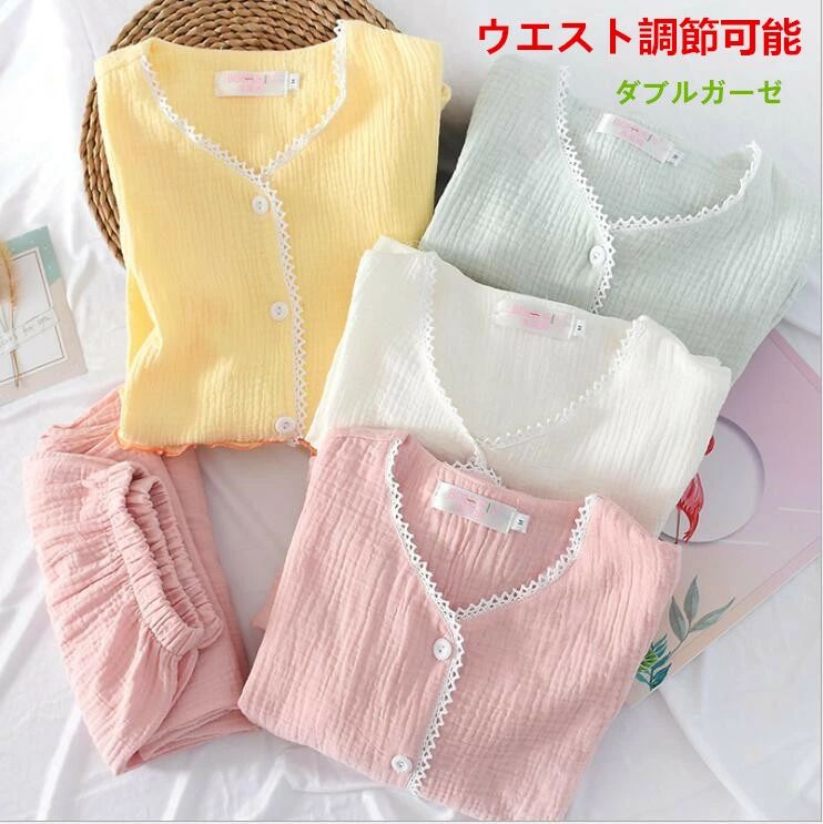 パジャマ ルームウェア レディース ダブルガーゼ 綿100% ウエストサイズ調節可能 マタニティ部屋着 ナイトウェア 上下セット パンツ チュニック ロングパンツ 長袖 春夏 通気性 吸水性 ロング