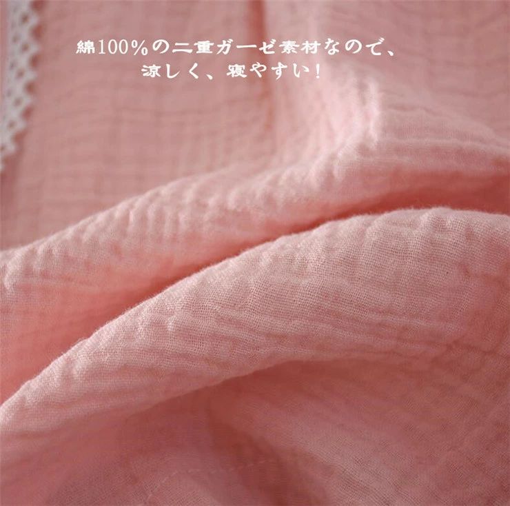 綿100%の二重ガーゼ素材なので、涼しく、寝やすいのがポイント☆