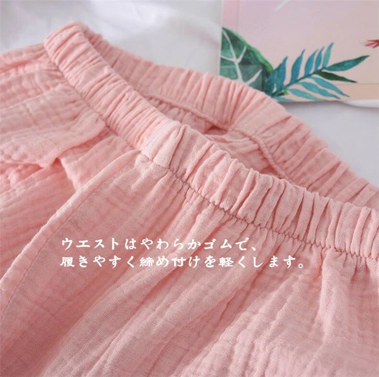 パジャマ ルームウェア レディース ダブルガーゼ 綿100% 部屋着 ナイトウェア 上下セット パンツ チュニック ロングパンツ 半袖 ロング 春夏 フェミニン ナチュラル シンプル 通気性 吸水性 ゆったりめ 柔らかい
