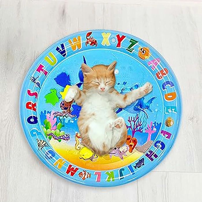 感覚ウォーターマット ペット ひんやりマット 猫のプレイマット ポータブル猫ベッド 水プレイマット 猫用厚みのある感覚水プレイマット ペットプレイ水センサーパッド、水プレイマット 感覚プレイマット猫