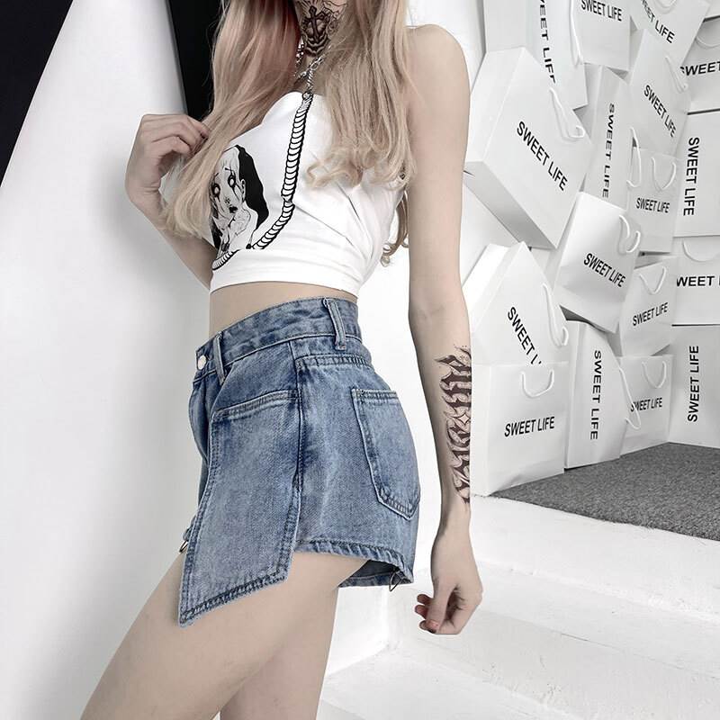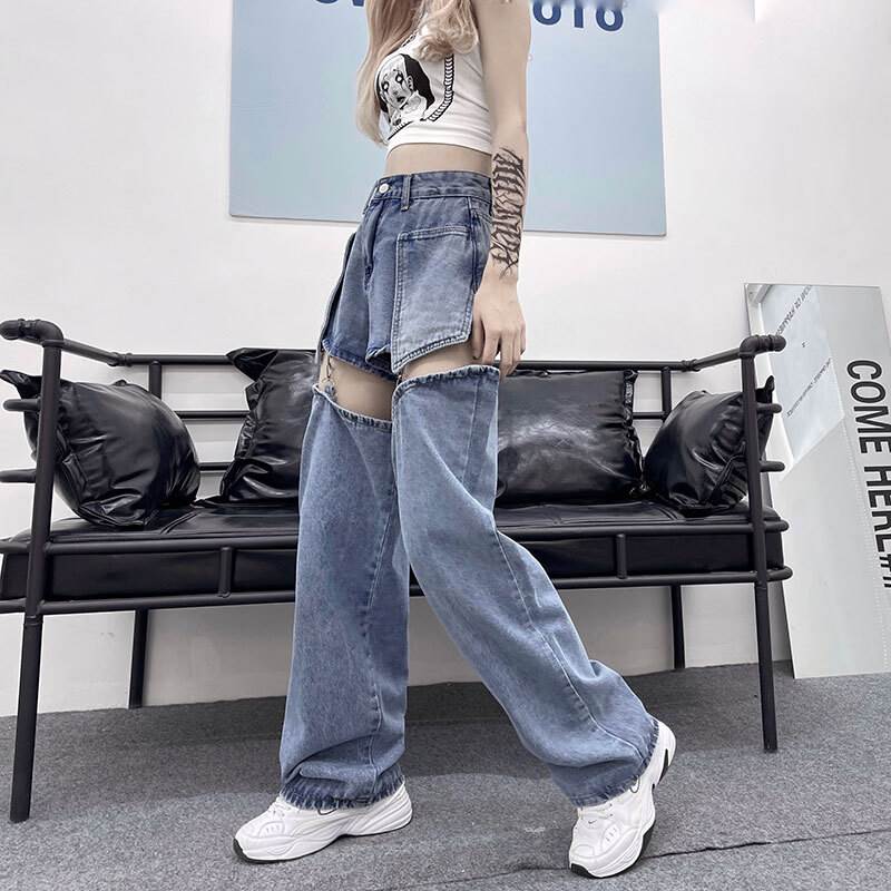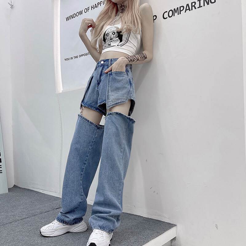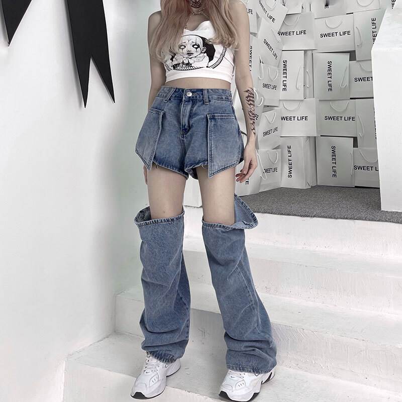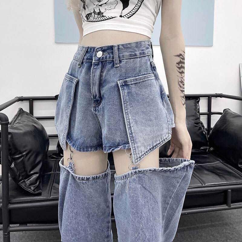 取り外し可能 ジーンズ デニム 2way レッグウォーマー ショートパンツ レディース ショート丈 主役 存在感 カジュアル 大人女子 こなれ感 ラフ ロング丈 ゆったり 大きめ 大きいサイズ ジーパン ハイウエスト 金具 20代 30代 オシャレ お洒落 ロック パンク メタル 足見せ 美脚 体型カバー 細見え ライブ ライヴ コンサート フェス イベント パーティー かっこいい クール セクシー 個性派 個性的 絶対領域