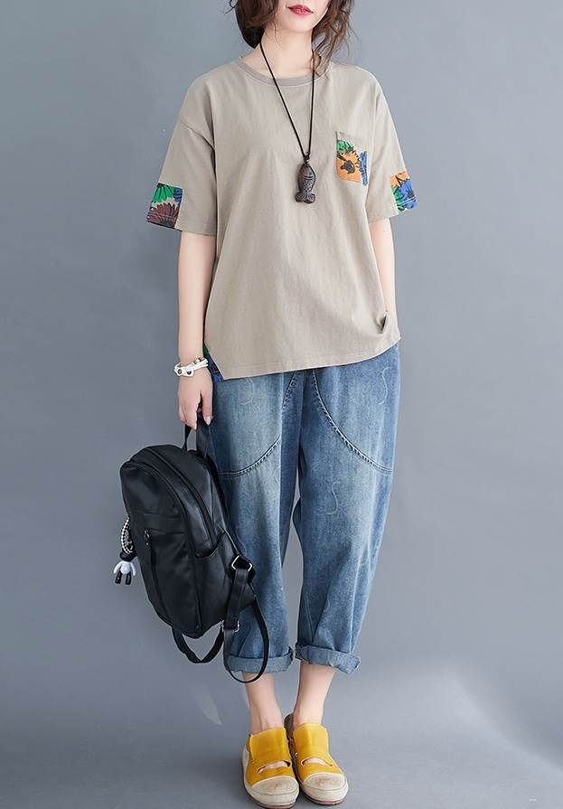 トップス レディース カットソー Tシャツ 個性的 半袖 ラウンドネック 花柄 レトロ ベージュ ピンク 青 緑 L XL 春 夏 秋 きれいめ おしゃれ ナチュラル カジュアル お出かけ シンプル
