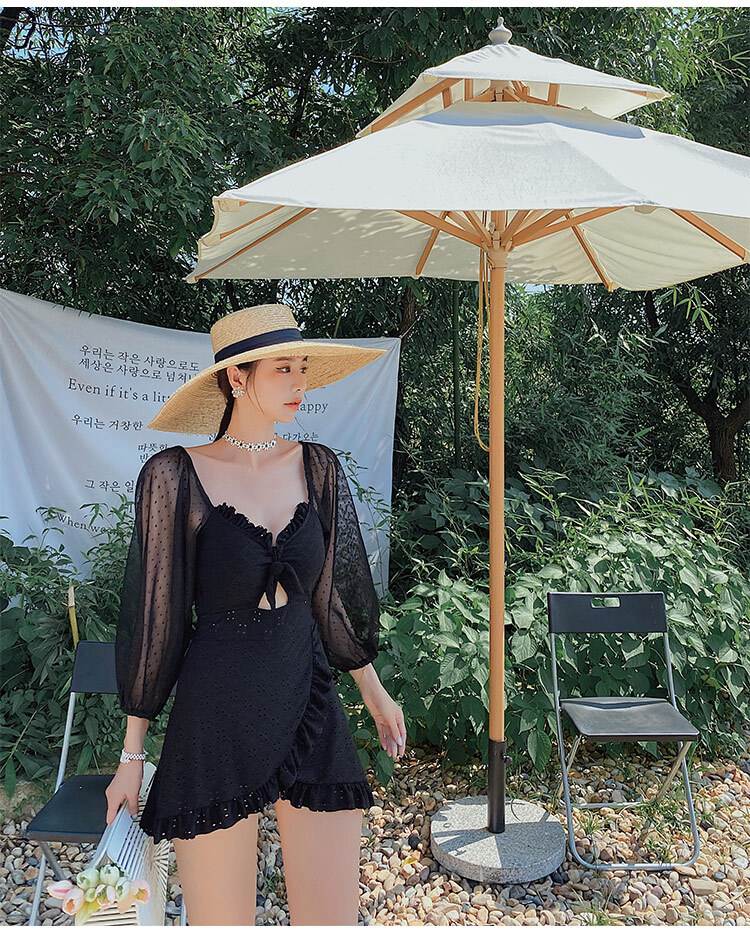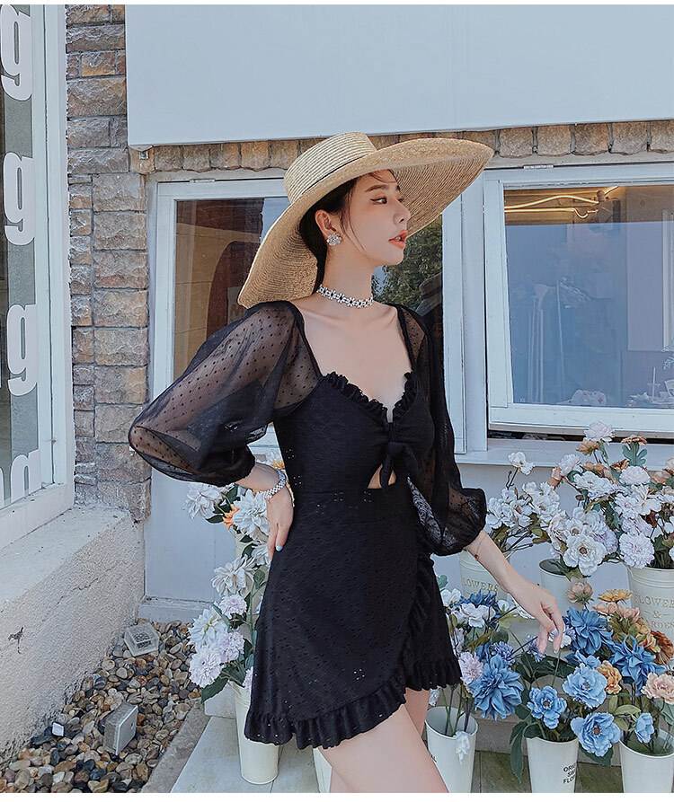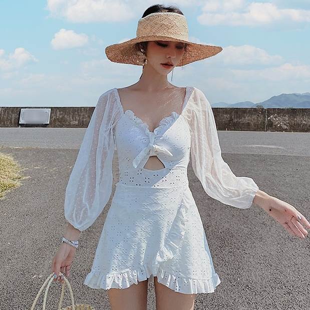 水着 ワンピース 2色 長袖 フリル レース レディース シフォン 透け感 パフスリーブ 韓国 トレンド 流行 シアー 肌見せ 学生 ОL スクール 海 海水浴 ビーチスイミング 白 ホワイト ブラック 黒 10代 20代 30代 40代 かわいい 大人可愛い 大人女子 オシャレ お洒落 セクシー キュート ガーリー フェミニン フェアリー 量産 ロリータ 姫系 大きいサイズ М L XL 2XL 個性的 個性派 ハイウエスト 脚長 美脚 スタイルアップ 新作 2022 映え SNS