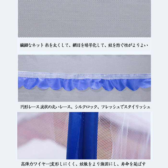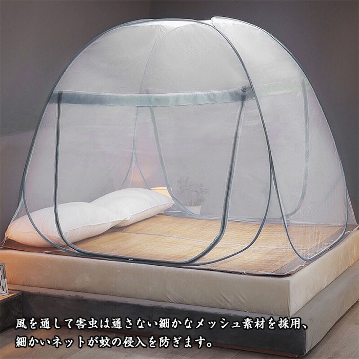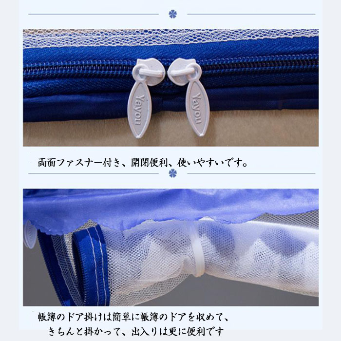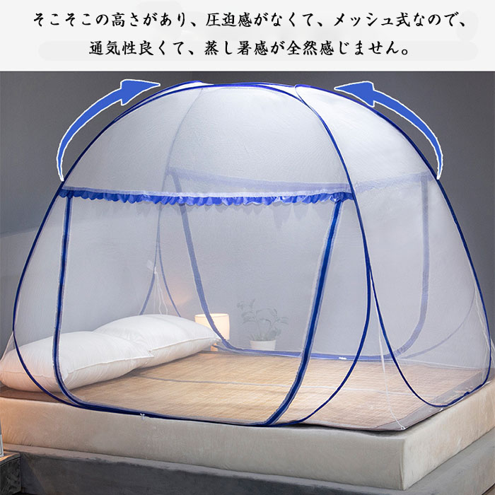 蚊帳 折りたたみ式 ワンタッチ 両面ファスナー ポリエステル 密度が高い 虫よけ 蚊よけ 収納便利 全方位ガード 収納バッグ付き ダブル180×200×150cm ブルー