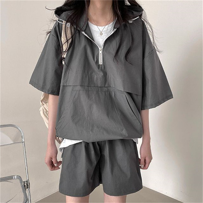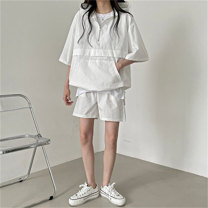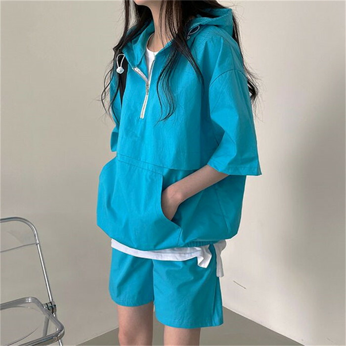 ラッシュガード セットアップ パーカーセットアップ レディース UV対策 紫外線対策 UVカット パンツ オーバーサイズ トップス ジップアップ ショートパンツ 無地 アウト ハイネック 日焼け 薄手