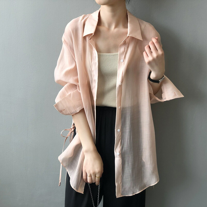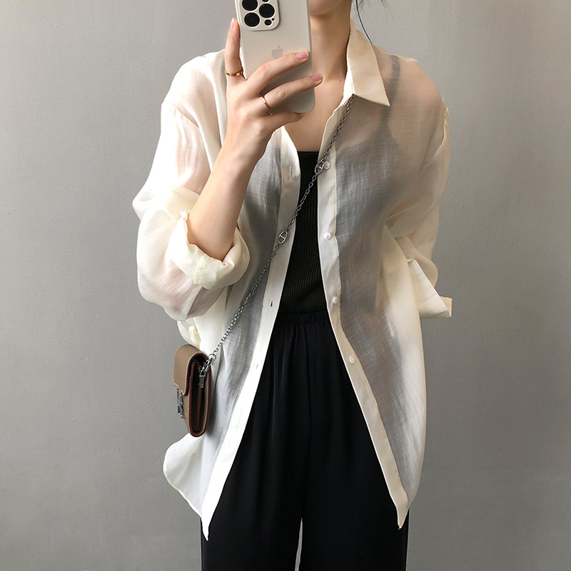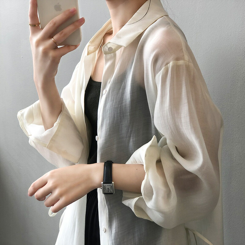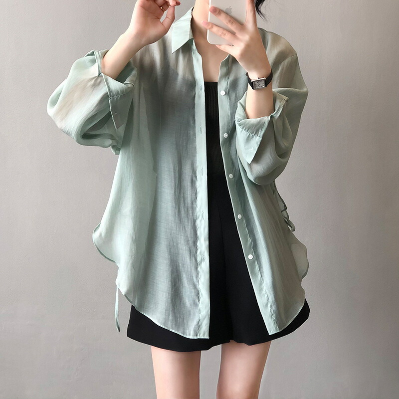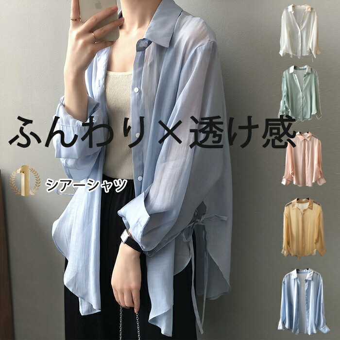 シアーシャツ シースルーシャツ レディース シャツ トップス シアー シースルー ブラウス 長袖 透け感 透け 春 夏 ビッグシルエット オーバーサイズ ゆったり 羽織 体系カバー きれいめ 冷房対策