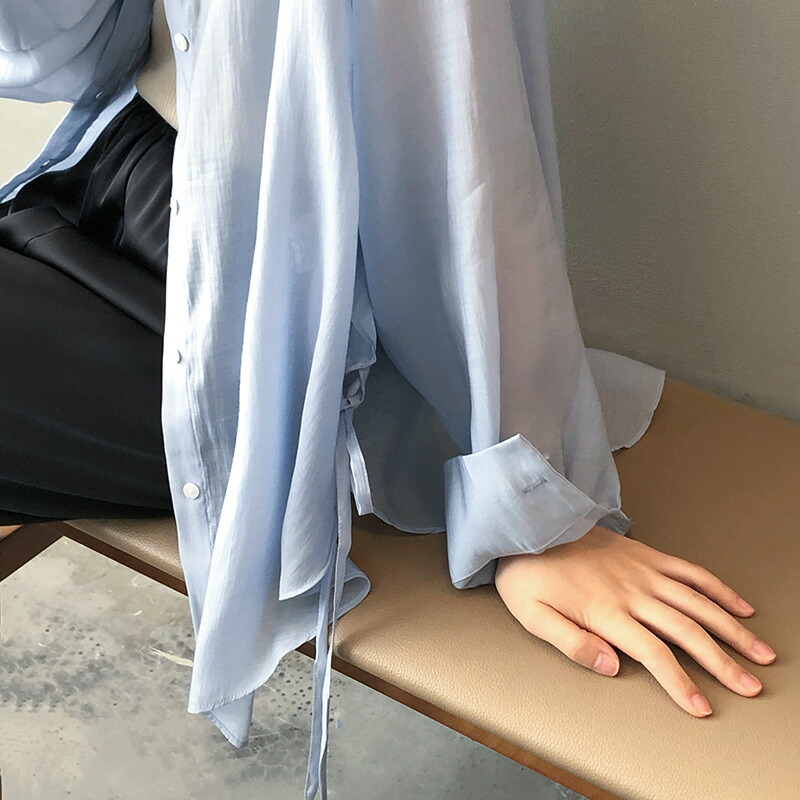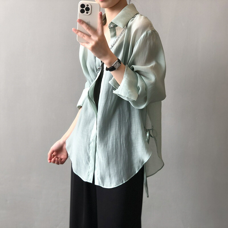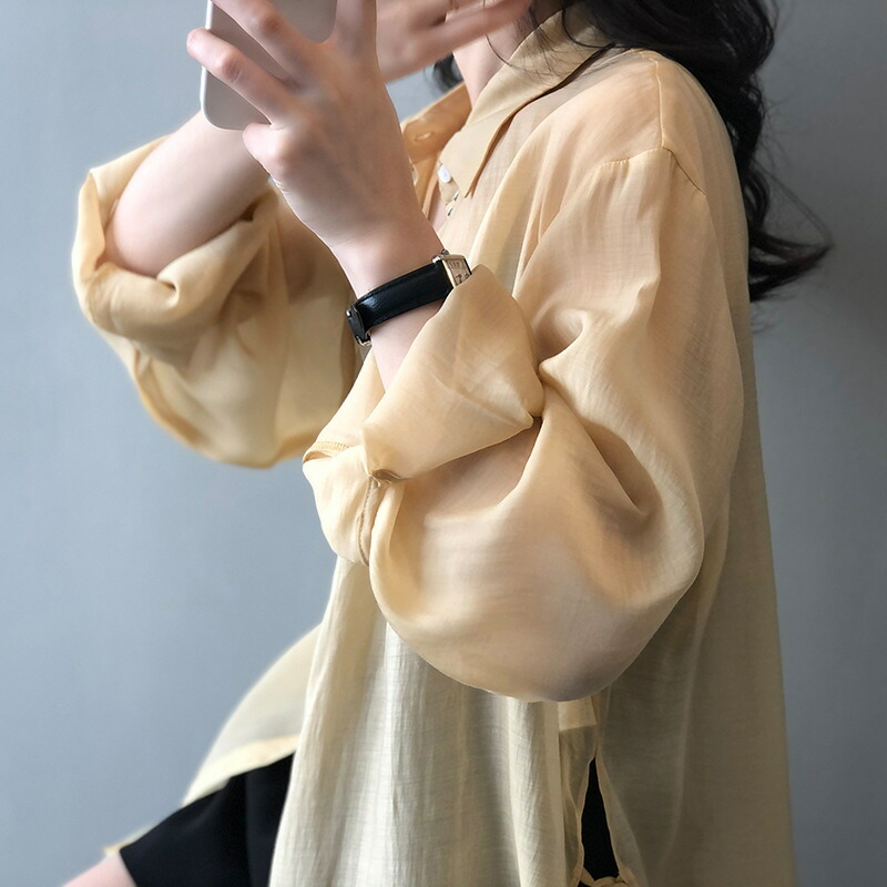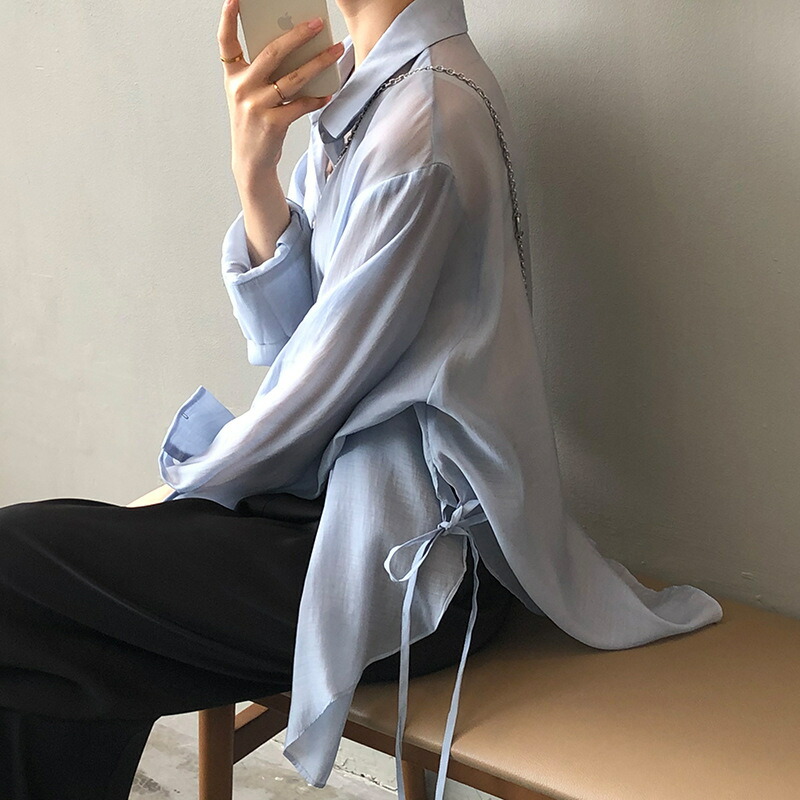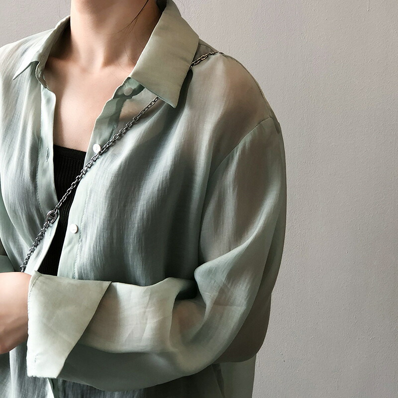 シアーシャツ シースルーシャツ レディース シャツ トップス シアー シースルー ブラウス 長袖 透け感 透け 春 夏 ビッグシルエット オーバーサイズ ゆったり 羽織 体系カバー きれいめ 冷房対策