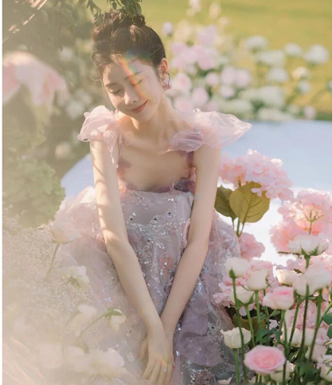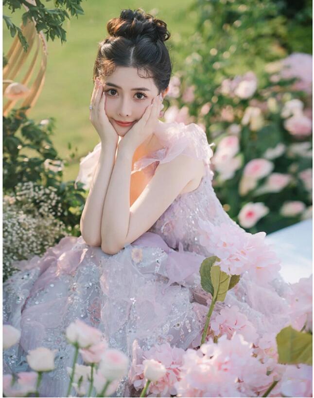 結婚式ドレス 二次会ドレス パープル 花柄 キャミドレス 可愛い キラキラドレス スパンコール 素敵 ゲストドレス お花 イブニングドレス 撮影 お姫様 プリンセスドレス ロングドレス 発表会 誕生日