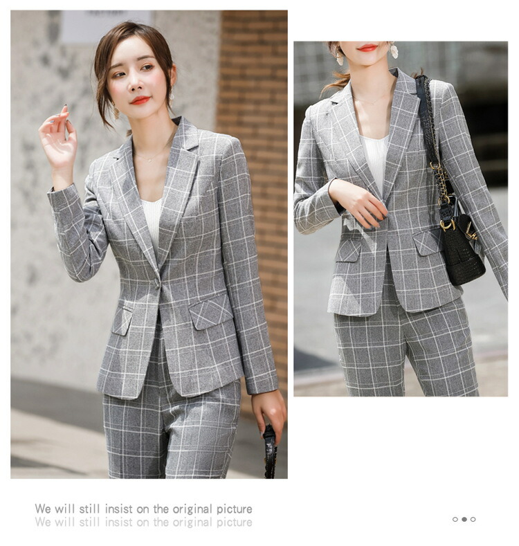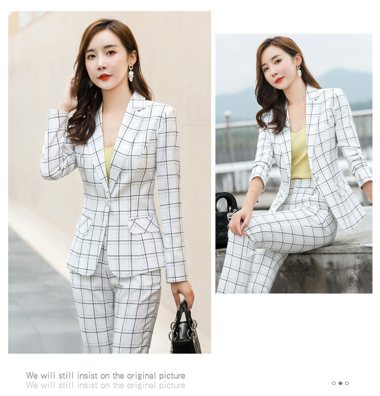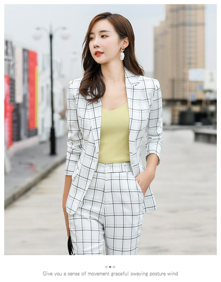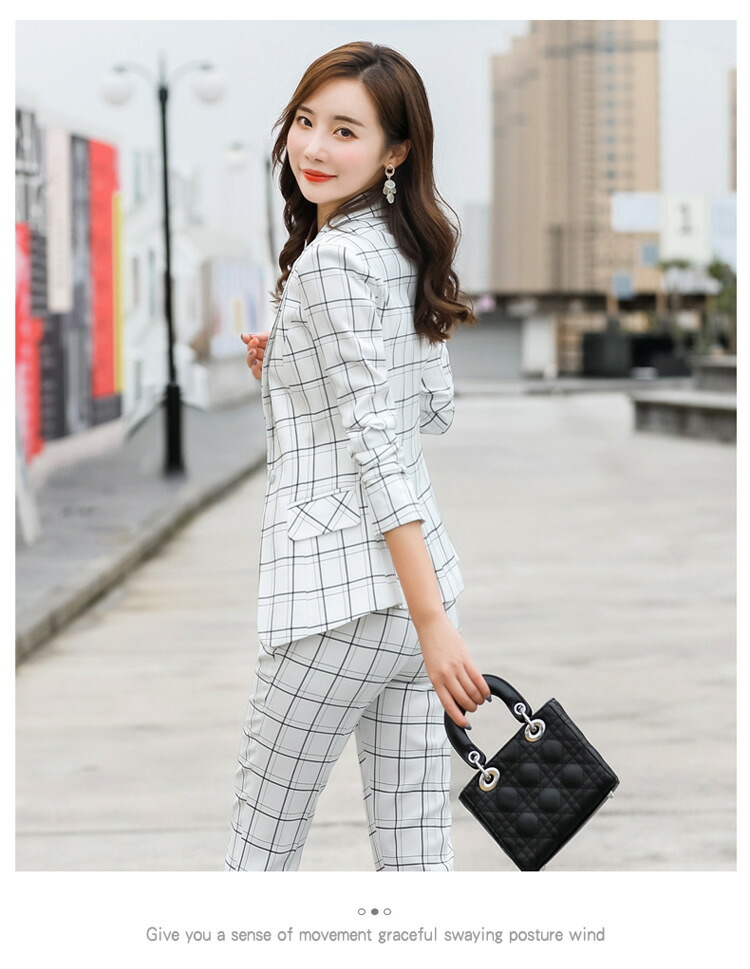 レディーススーツ チェック柄 スリム レディースファッション 通販 ピンク ホワイト ベージュ グレー S M L XL 2XL 3XL 4XL