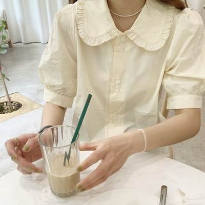 トップス ブラウス パフスリーブ フリル シャツ 襟付き 半袖 レディース 送料無料 個性的 前開き きれいめ 上品 О 通勤 オフィス シンプル ガーリー ロリータ 春 秋 夏 こなれ感 無地